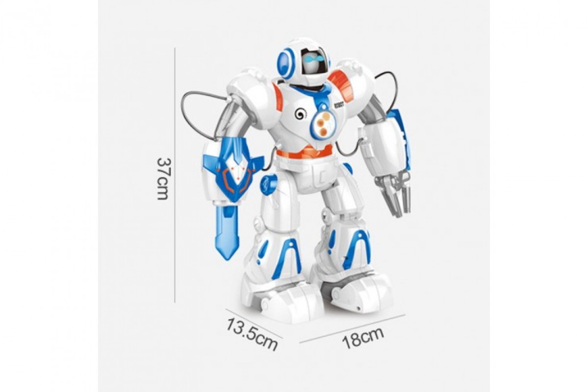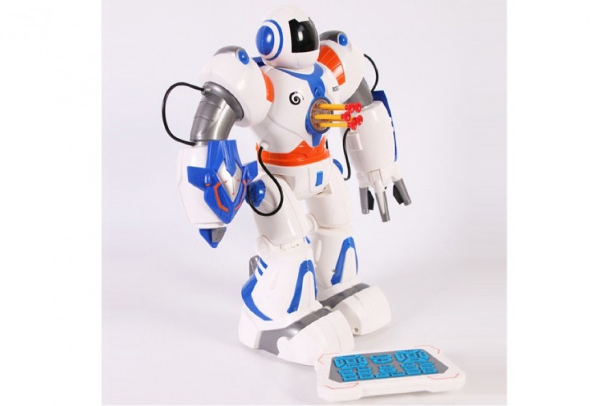 Робот умеет: ходить во всех направлениях, разворачиваться на месте, стрелять, петь, танцевать, рассказывать истории, стрелять присосками, махать мечом, у него несколько скоростей передвижения, и самое главное, его можно самому запрограммировать. Изготовлен робот из качественного пластика, питается встроенным аккумулятором.