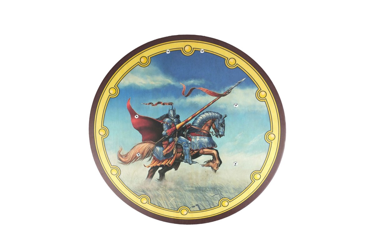 Детский щит круглый изготовлен из березовой фанеры с рукояткой из натуральной кожи. Отлично подходит для ролевых игр, в которых ребенок сможет почувствовать себя рыцарем, викингом, воином. Каждый щит обладает уникальным дизайном, чтобы привлечь внимание и воодушевить вашего ребенка. Отшлифован и покрашен. Не имеет заусенцев и готов к игре. Размер: 370х370х4 мм.