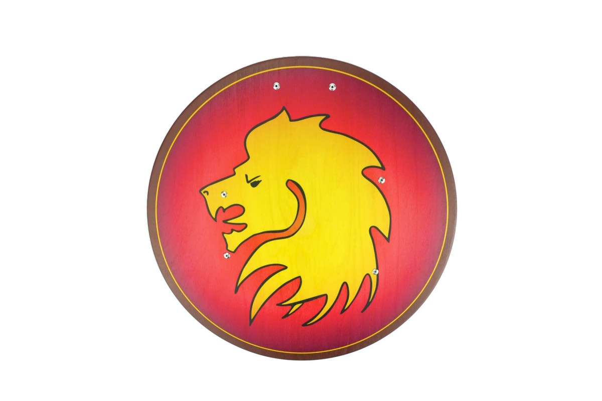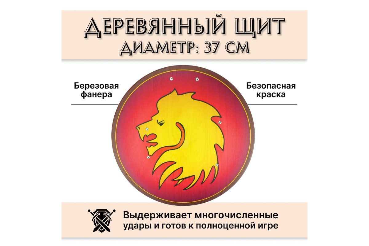 Детский щит круглый изготовлен из березовой фанеры с рукояткой из натуральной кожи. Отшлифован и покрашен. Не имеет заусенцев и готов к игре.