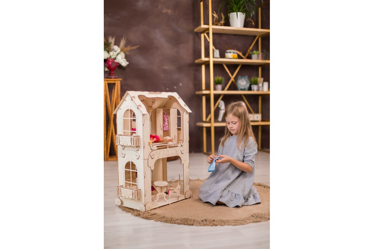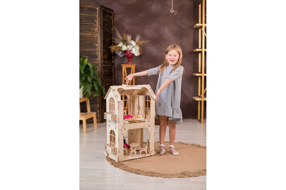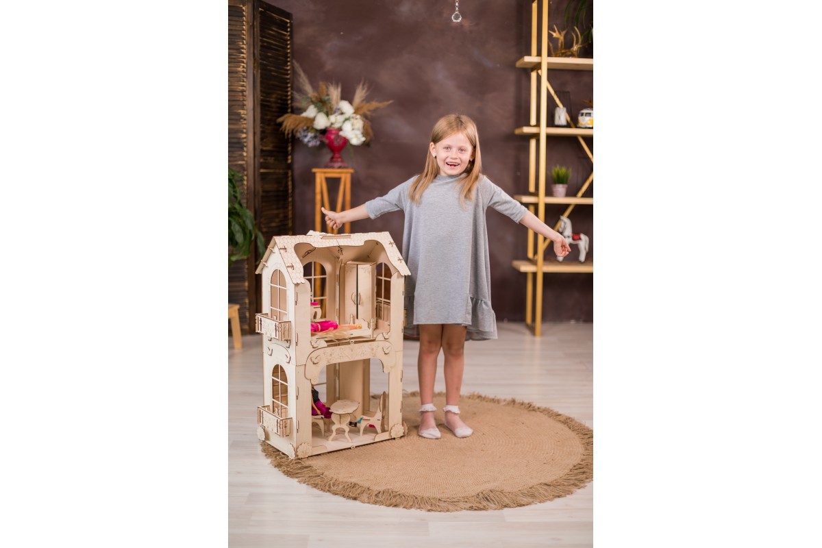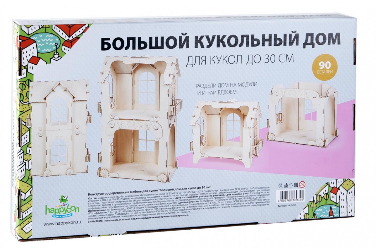 ХэппиДом для больших кукол до 30 см - это великолепный модульный домик из натурального материала (березовой фанеры).
