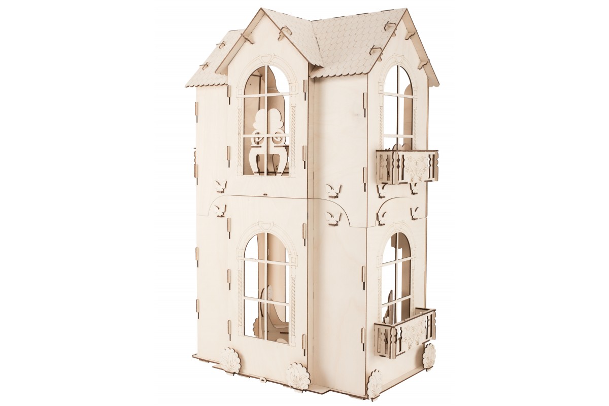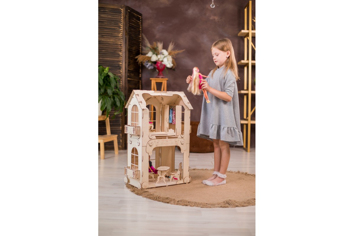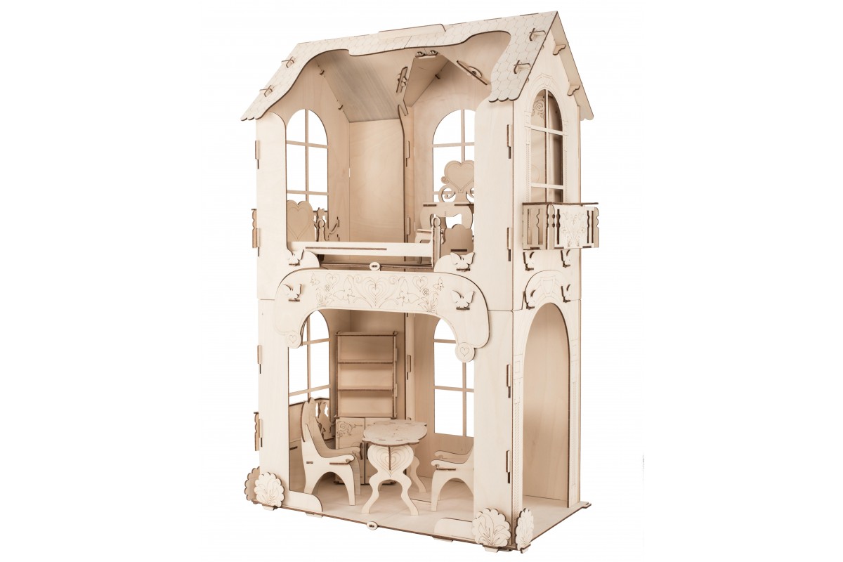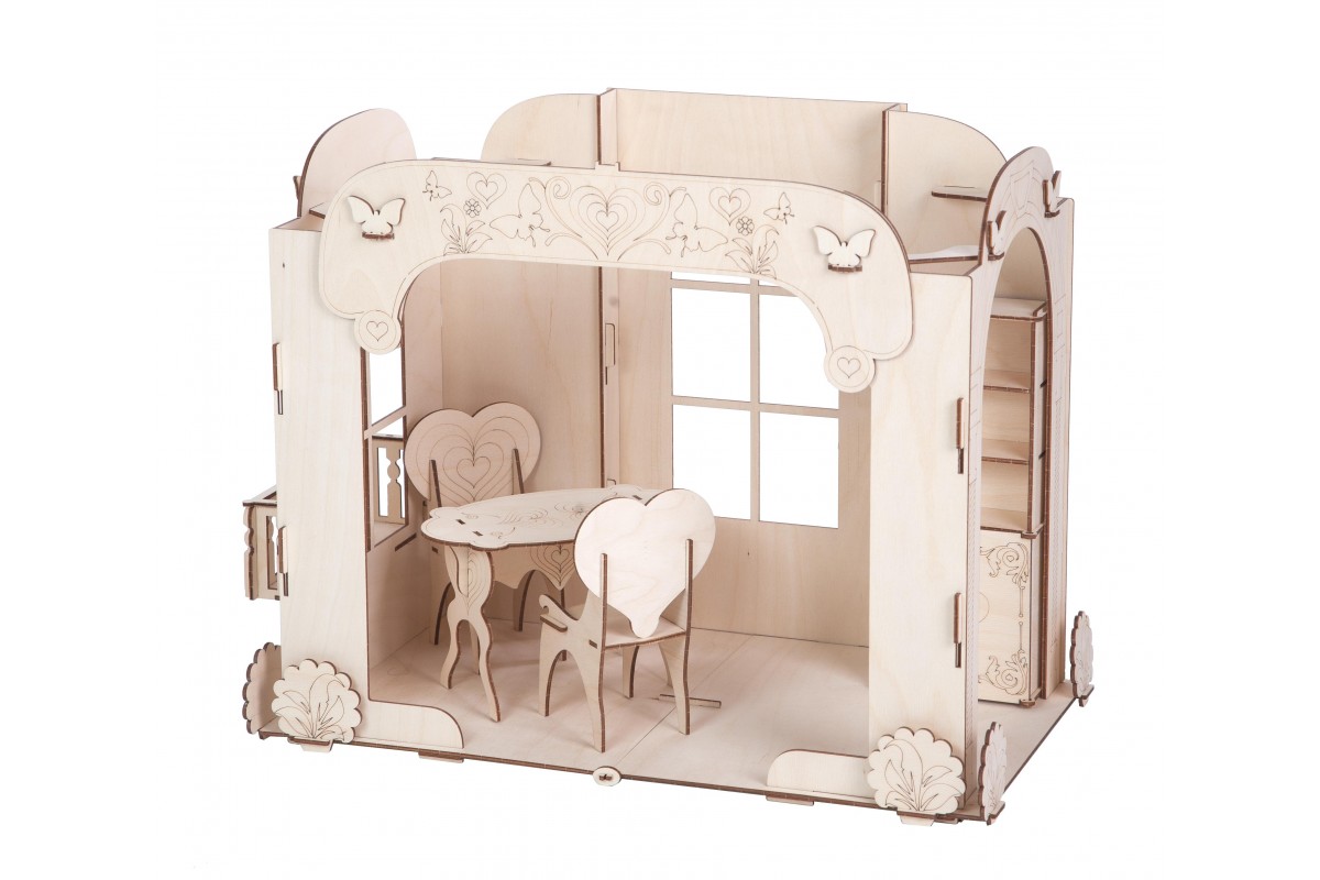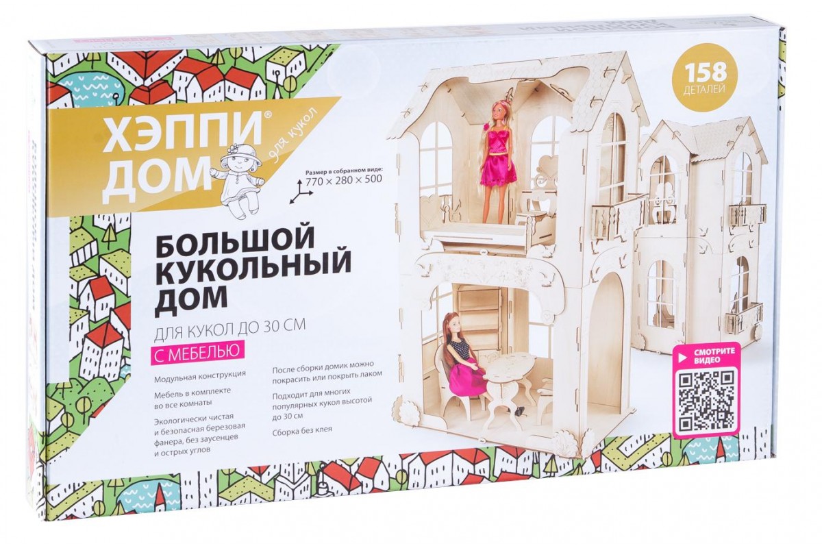 ХэппиДом для больших кукол до 30 см с мебелью - это великолепный модульный домик из натурального материала (березовой фанеры).