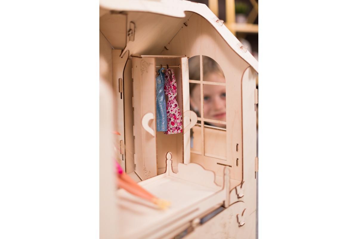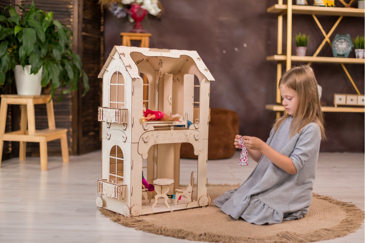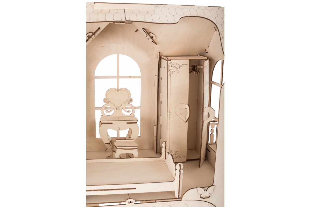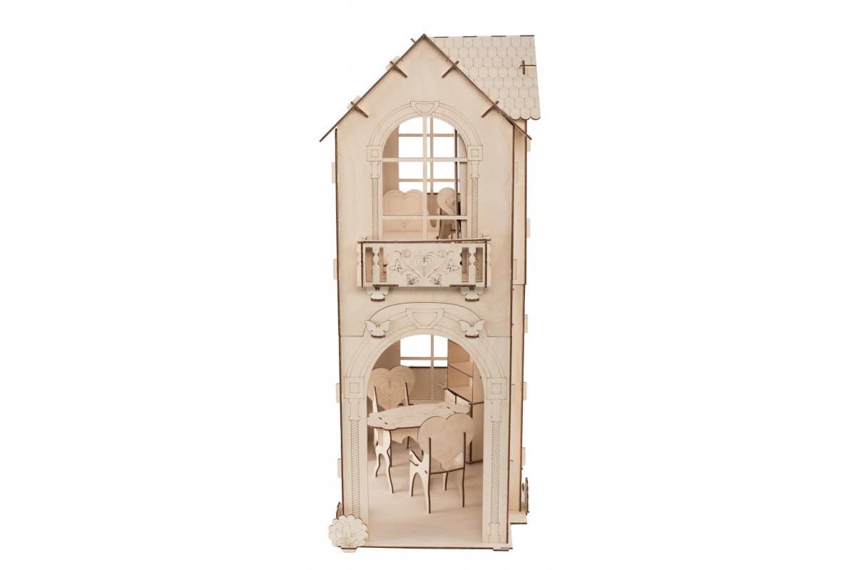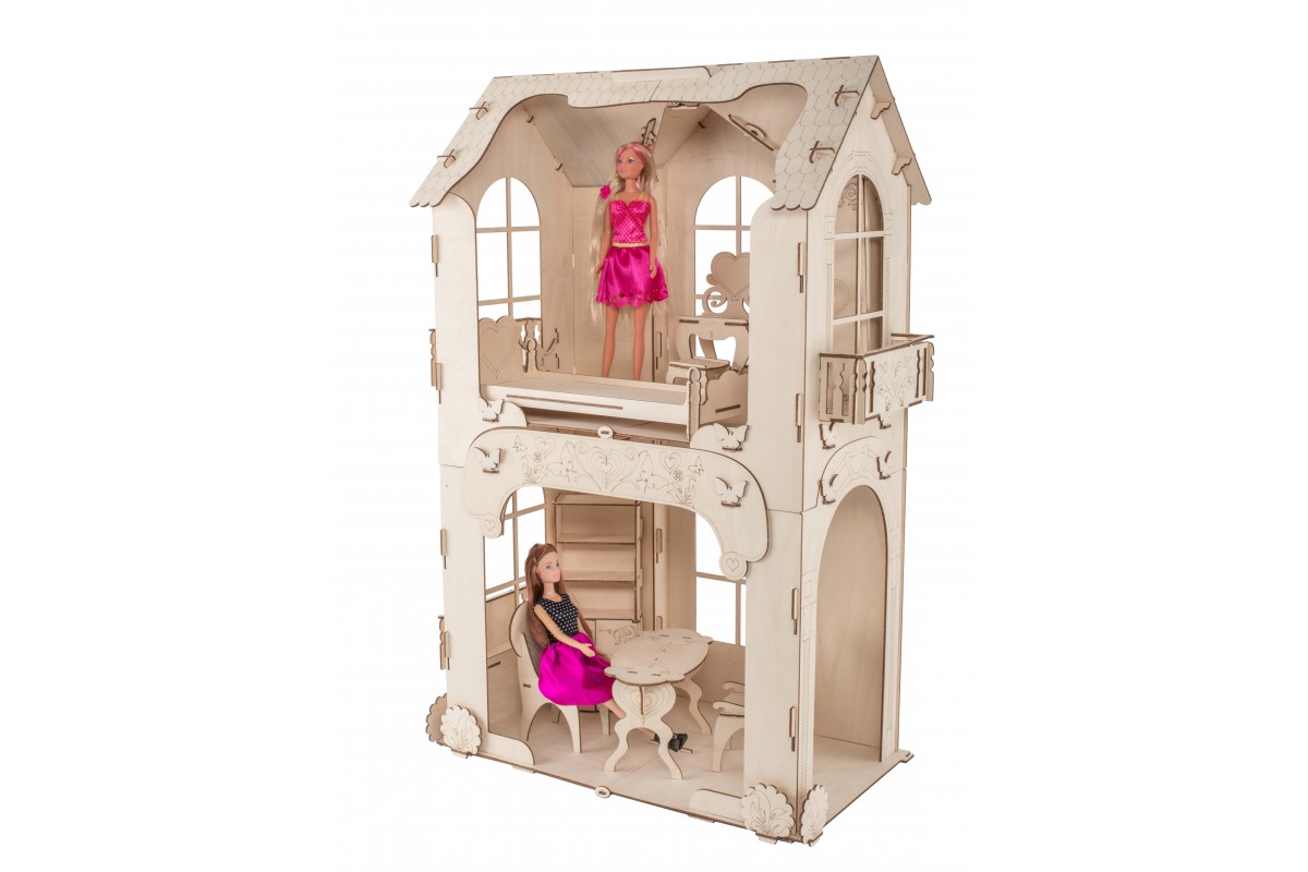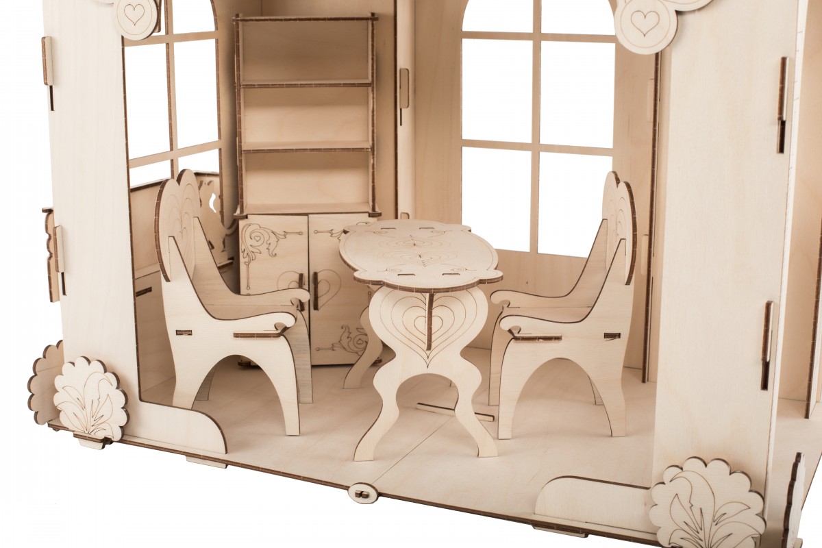 ХэппиДом для больших кукол до 30 см с мебелью - это великолепный модульный домик из натурального материала (березовой фанеры).