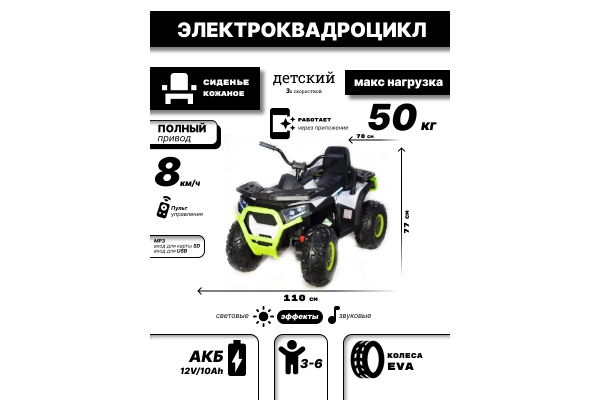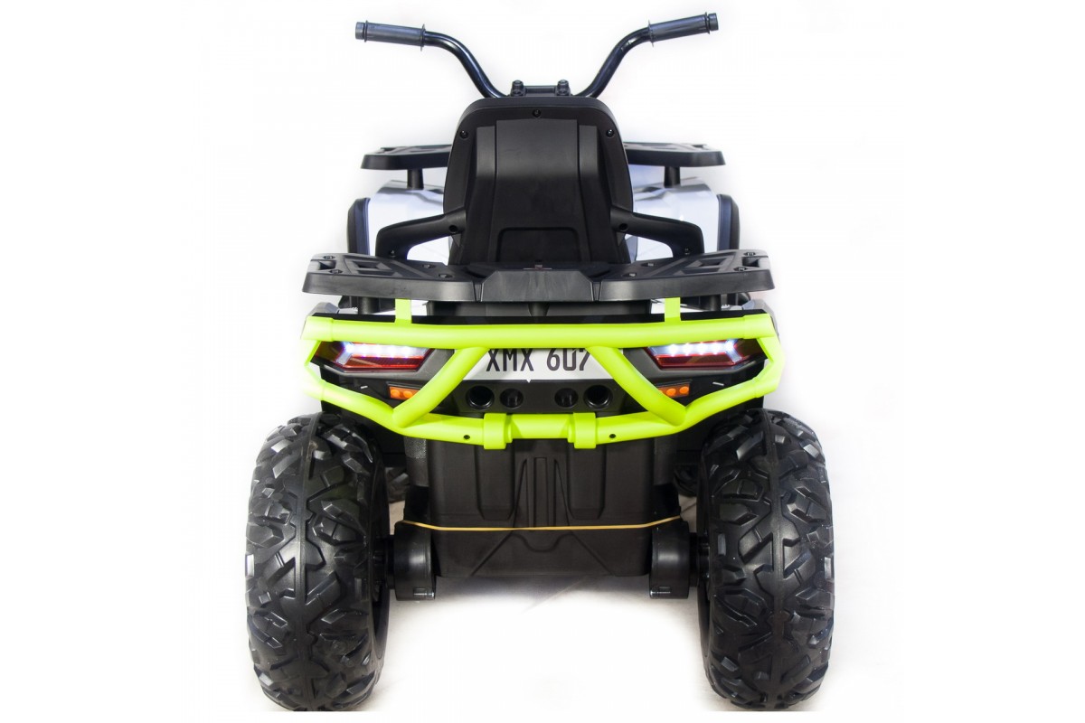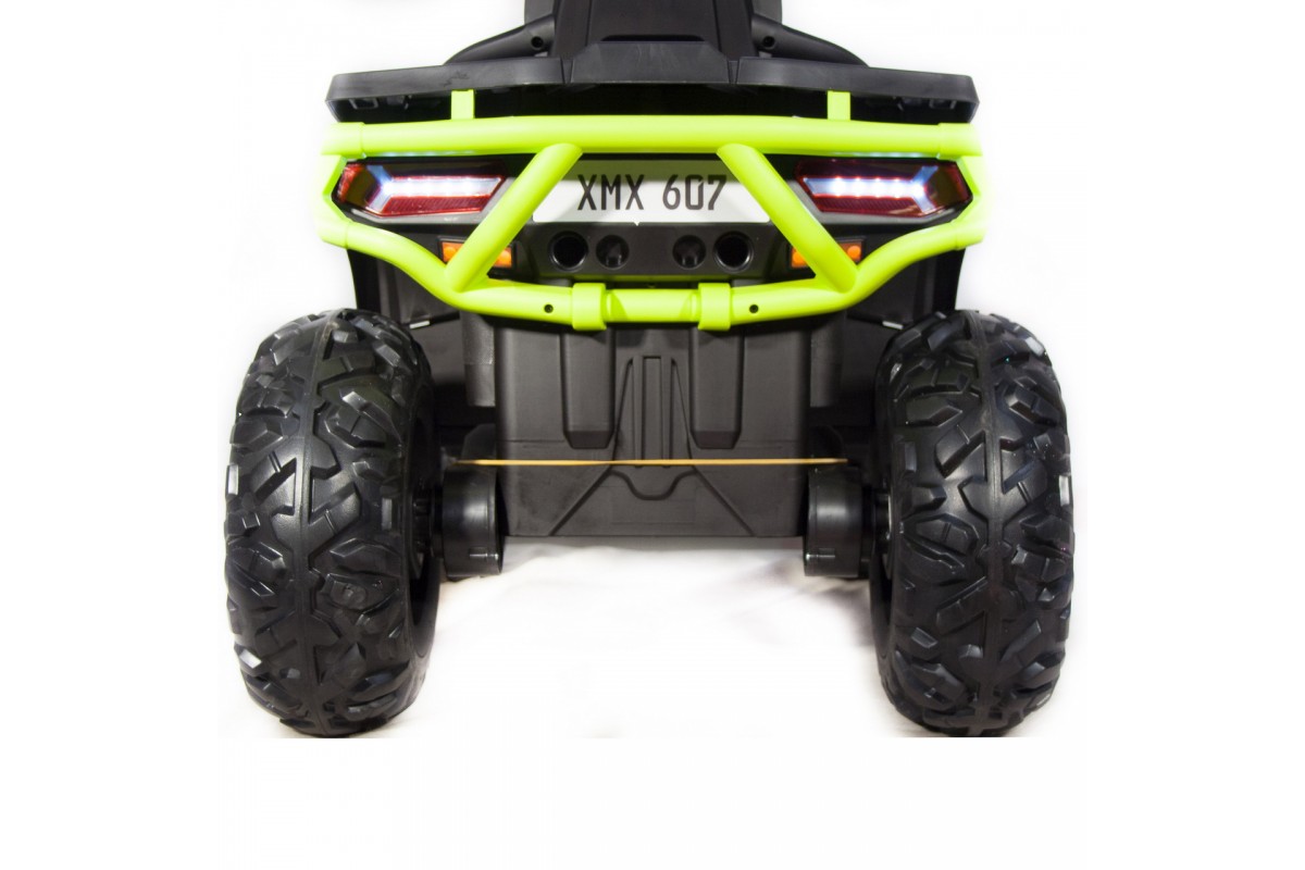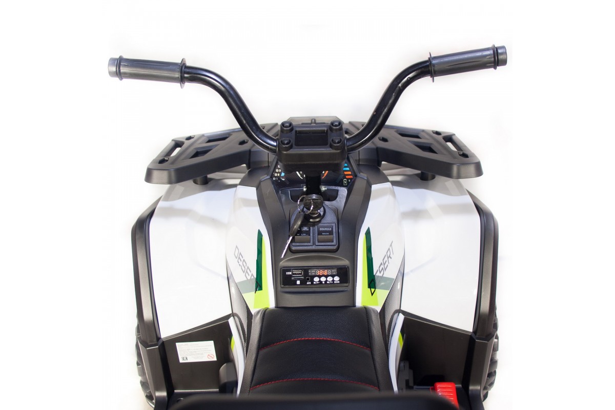 Квадроцикл оснащен светодиодными огнями передних и задних фар, что обеспечивает безопасность в темное время суток. Также есть разъемы для подключения MP3, вход для карты SD и вход для USB, что позволяет слушать музыку и смотреть видео прямо во время езды.
