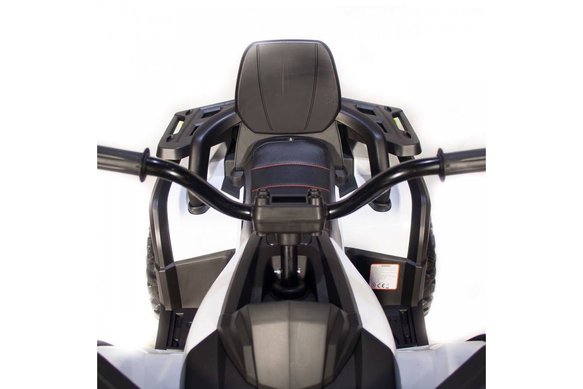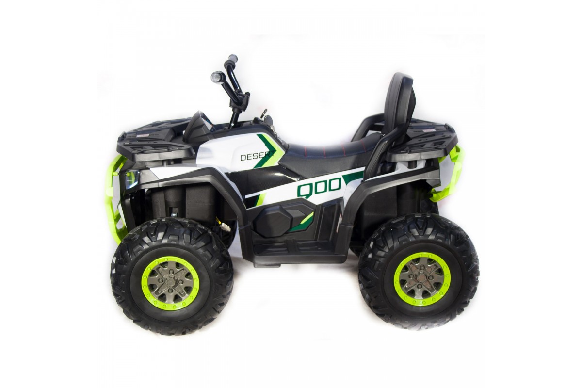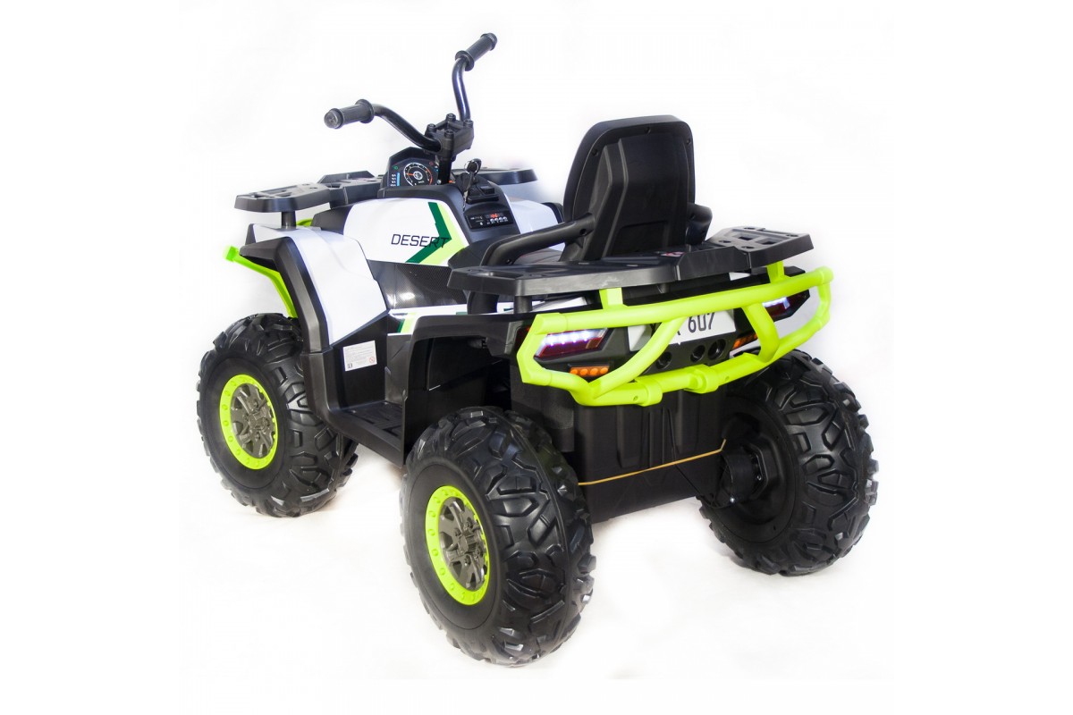 Аккумулятор 12V/10Ah и четыре двигателя по 35W обеспечивают максимальную скорость до 8 км/ч. Квадроцикл имеет две скорости вперед и одну скорость движения назад. Заводится с ключа или кнопки, что делает его удобным и безопасным для использования.