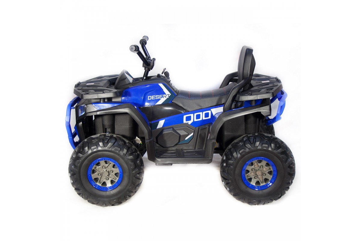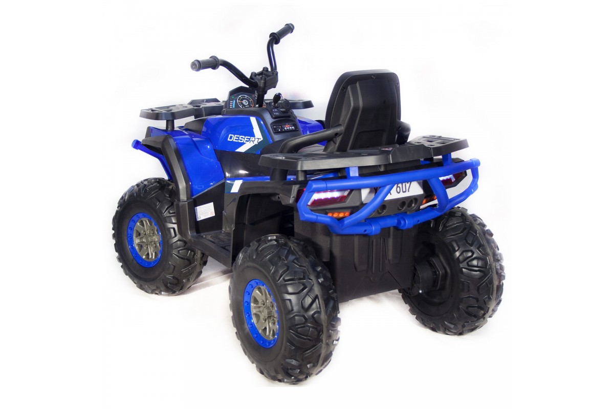 Аккумулятор 12V/10Ah и четыре двигателя по 35W обеспечивают максимальную скорость до 8 км/ч. Квадроцикл имеет две скорости вперед и одну скорость движения назад. Заводится с ключа или кнопки, что делает его удобным и безопасным для использования.