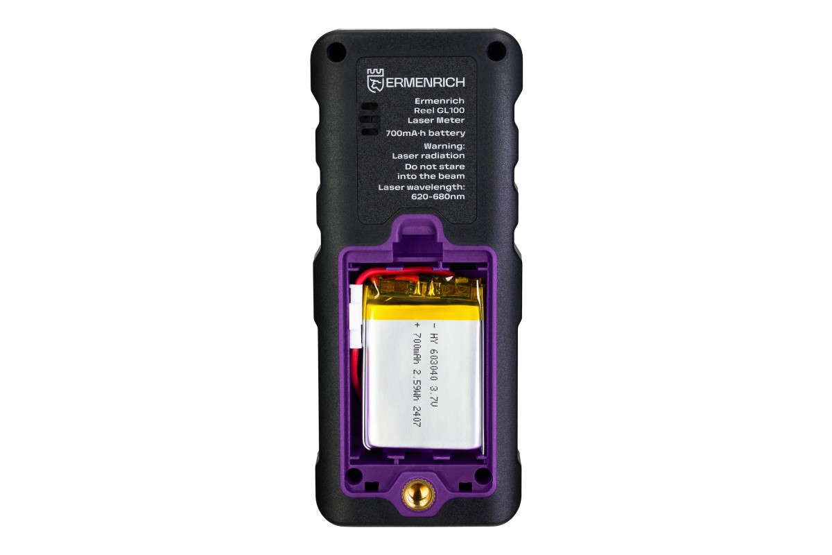 При полном заряде аккумулятора лазерная рулетка Ermenrich Reel PRO GL100 будет способна на 3 часа непрерывной работы. Сэкономить энергию поможет режим автоматического отключения: лазера – после 30 секунд отсутствия активности, прибора – после 2 минут.