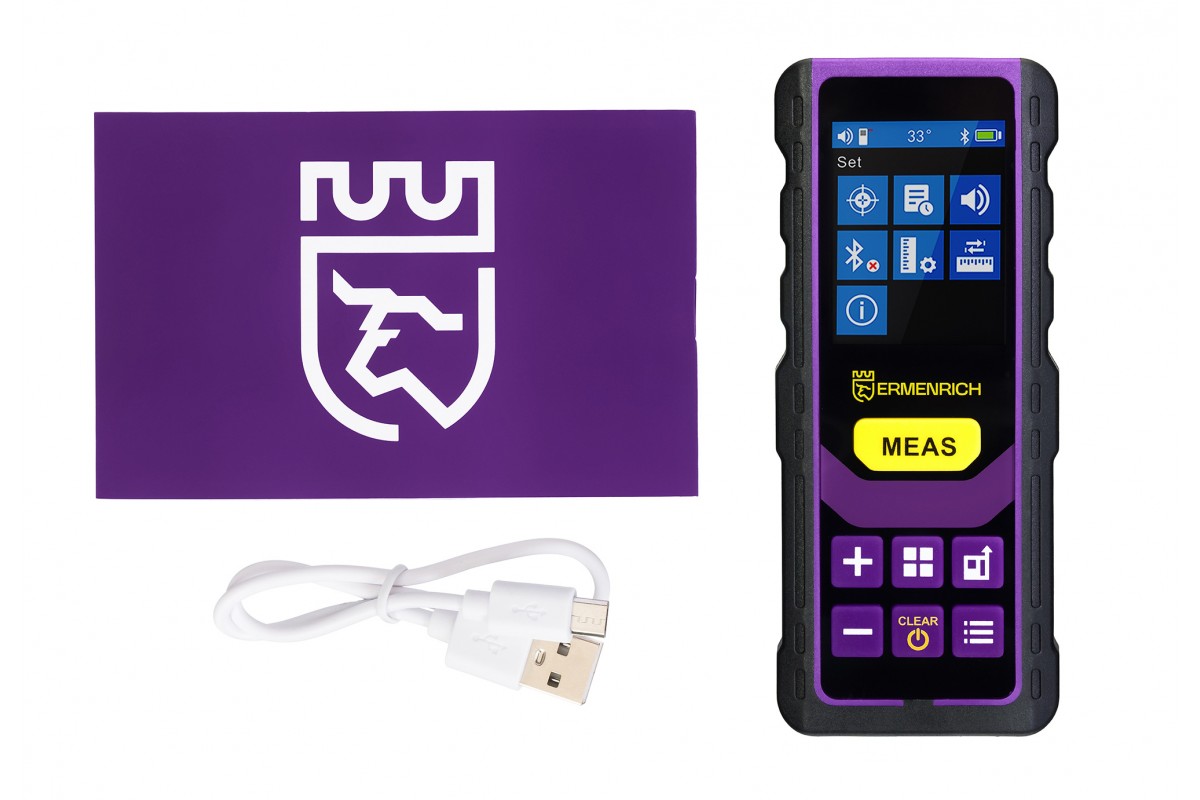 В приборе предусмотрено множество функций, которые будут полезны и профессионалам, и любителям. Функция «Пифагор» поможет косвенно измерить расстояние между двумя точками по двум промежуточным замерам. Для экономии времени при расчетах предусмотрена возможность сложения/вычитания от готового результата измерений. Если нет времени часто смотреть на экран во время активной работы, можно активировать функцию озвучки значений на экране прибора. Лазерная рулетка Ermenrich Reel PRO GL60 имеет встроенную память, объема которой достаточно для хранения большого количества результатов измерений – до 100 групп.