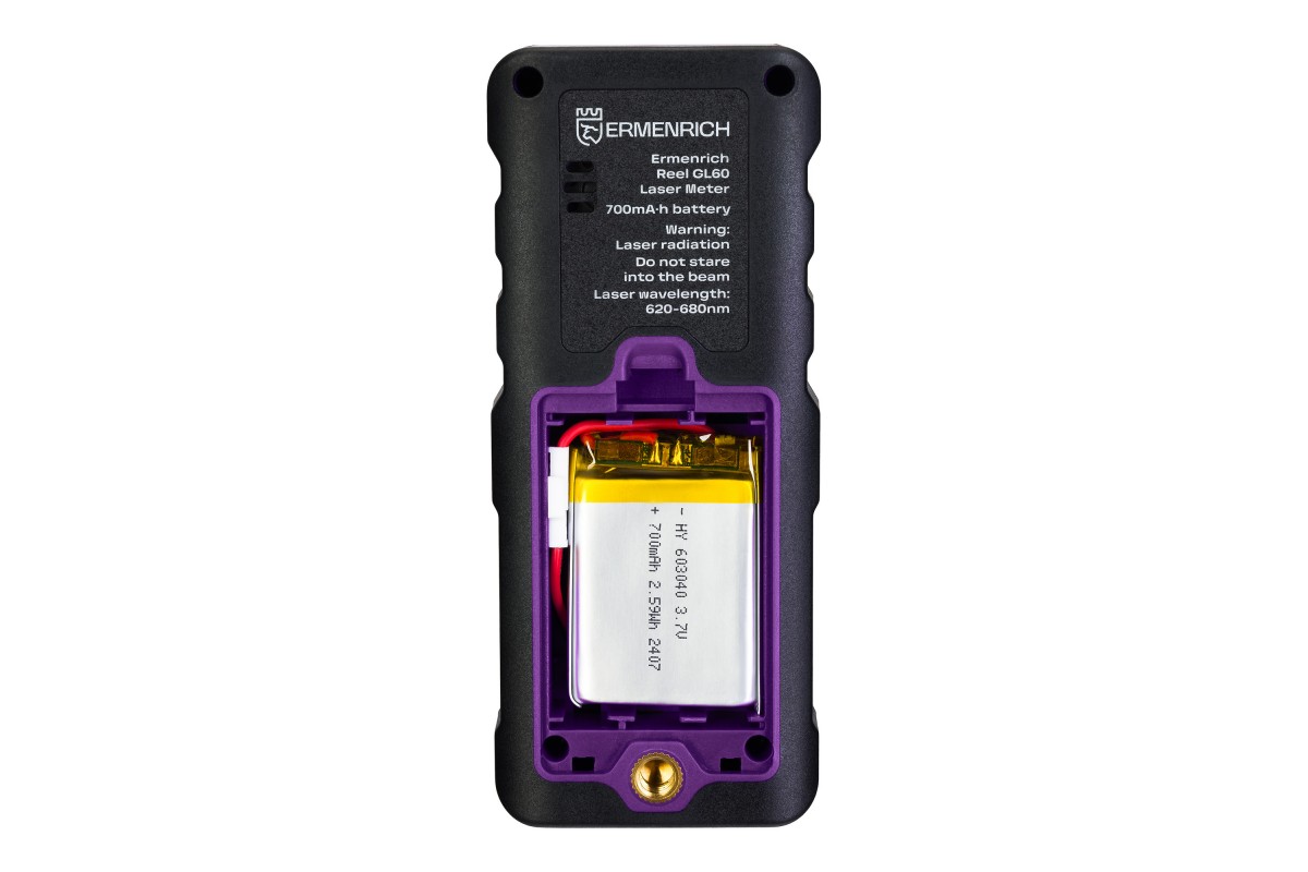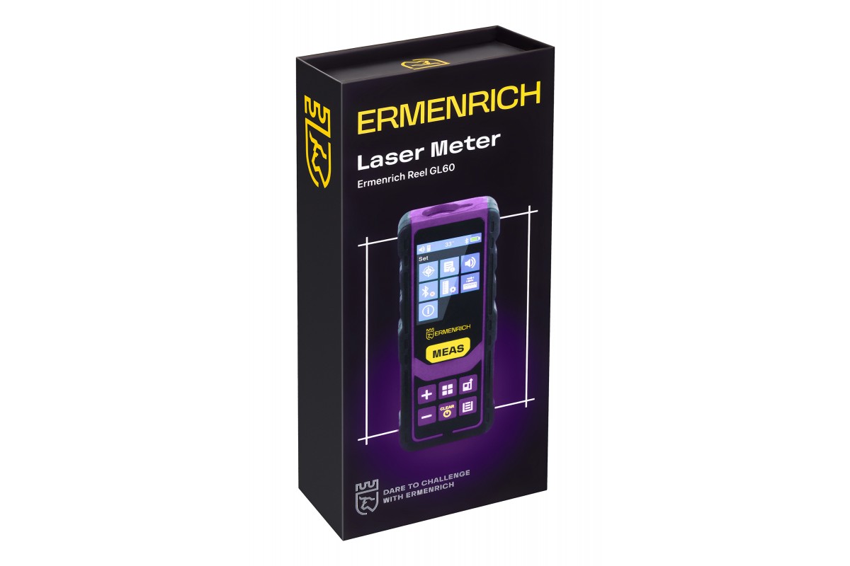 Лазерная рулетка Ermenrich Reel PRO GL60 – инструмент для строительных, ремонтных и инженерных работ, позволяющий измерять большое количество линейных и не только параметров: расстояние, длину, углы, площадь, объем треугольников и квадратов. Измерения можно производить как в одиночном, так и в сканирующем режиме. Точность работы рулетки обеспечивается лазером III класса, имеющим длину волны 500–535 нм и дающим погрешность не более 1,5 миллиметров. Цвет лазера – зеленый, за счет чего его лучше видно при работе днем.