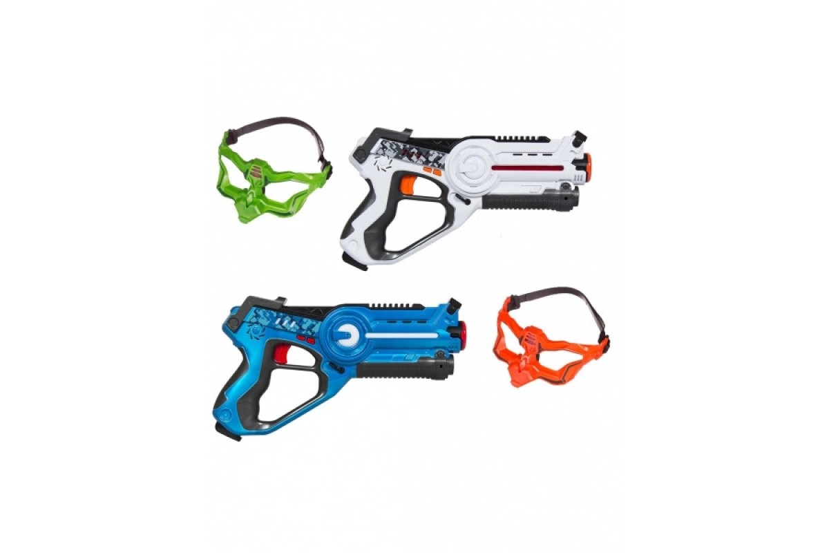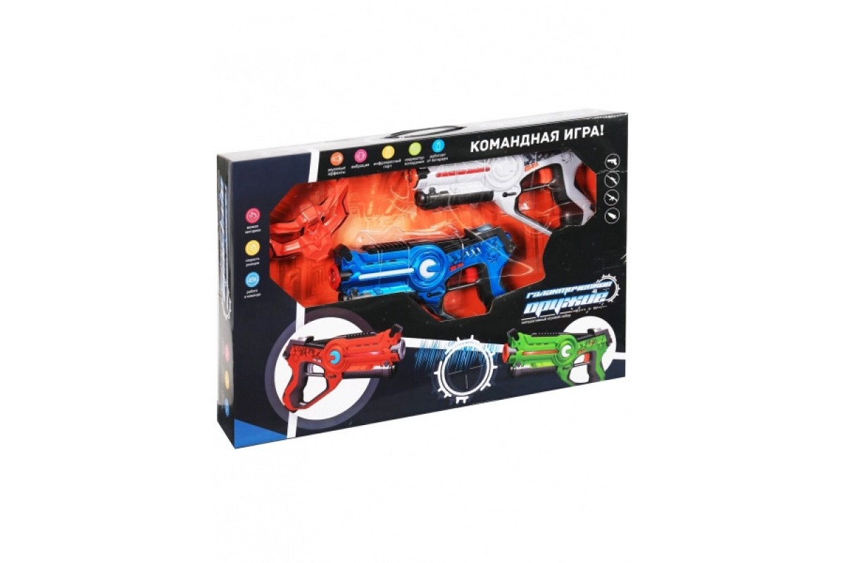 Набор оружия Winyea Call of Life W7001D со звуковыми и световыми эффектами надолго увлечет мальчишек. Пистолеты стреляют инфракрасным лучем, при попадании в маску она подает сигнал и показывает что снята 1 жизнь.