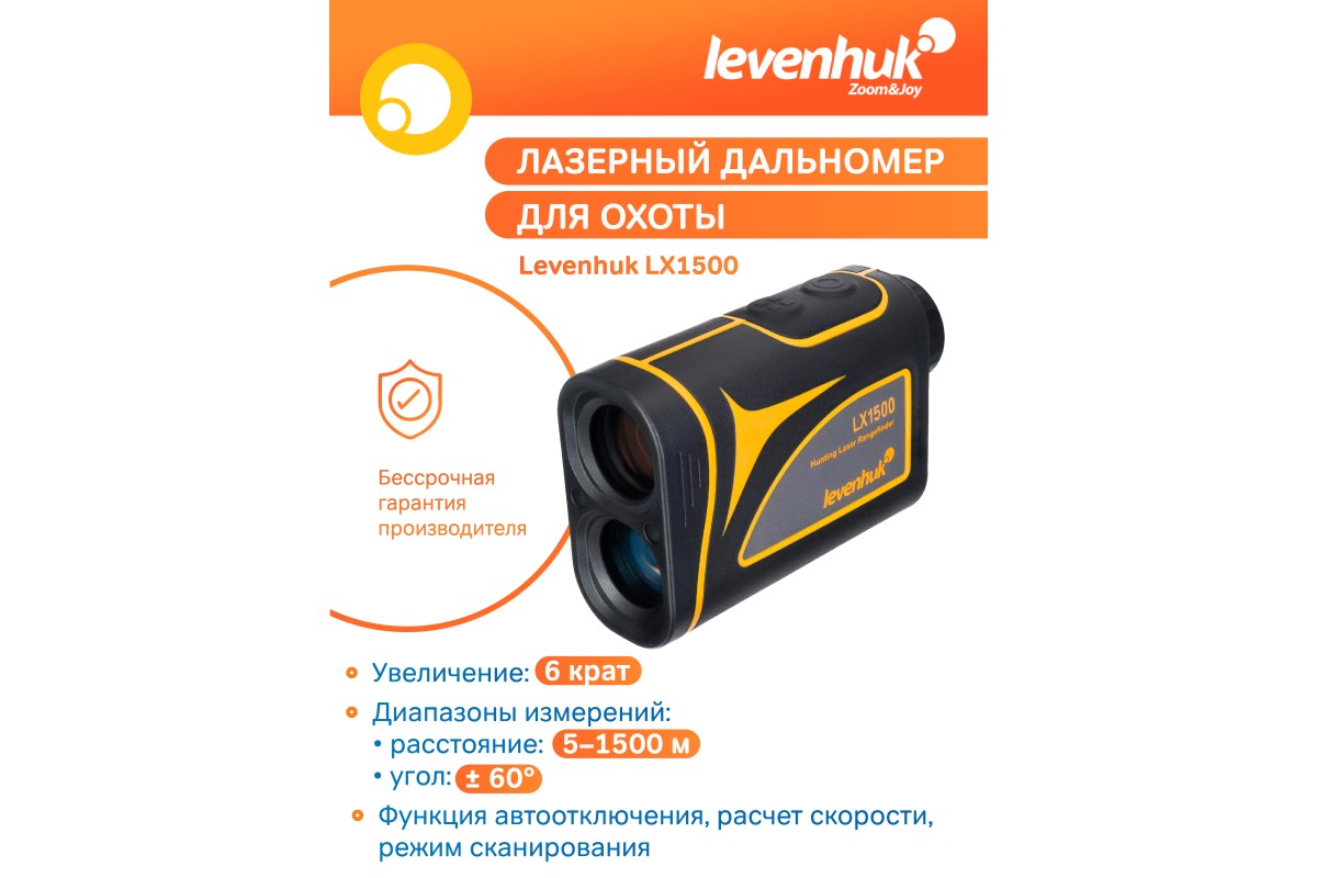 Лазерный дальномер Levenhuk LX1500 – верный помощник в любых измерениях на местности. Он небольшой, легкий и главное – точный и быстрый в определении расстояний, углов и скоростей. Прекрасно подходит для использования во время охоты, похода или спортивного соревнования. Управление интуитивно понятное, а расход питания экономный. Прибор позволяет проводить замеры на дистанции от 5 до 1500 метров и может использоваться как монокуляр для наблюдений на увеличении 6 крат.