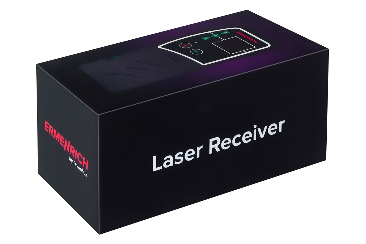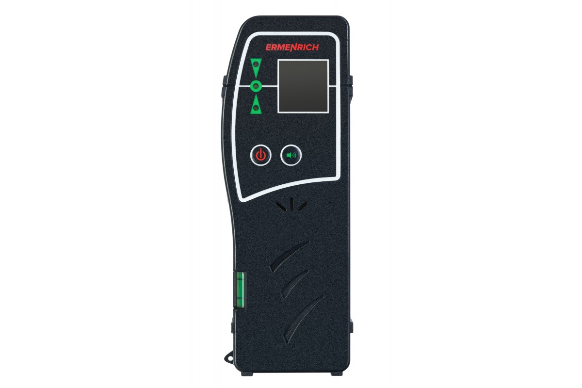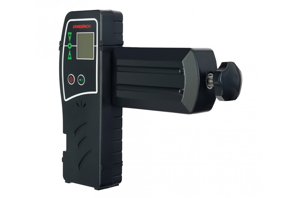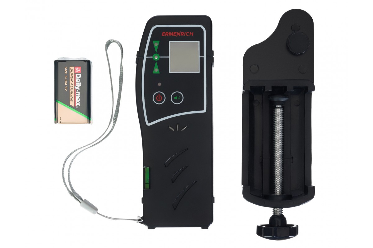 Лазерный приемник Ermenrich LR30 позволяет определять положение лазерного луча в пределах 50 метров, что делает работу с лазерными уровнями и рулетками более эффективной и удобной. Приемник распознает лучи красного и зеленого цвета. Настроить положение прибора относительно луча помогут светодиодные индикаторы. Сам приемник устанавливается на поверхности с помощью пузырьковых уровней, встроенных в корпус, а также может быть закреплен на штативе.