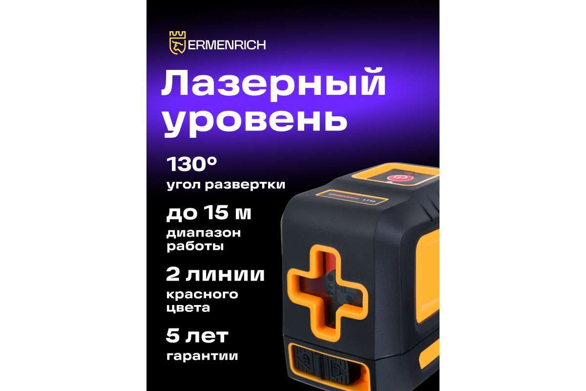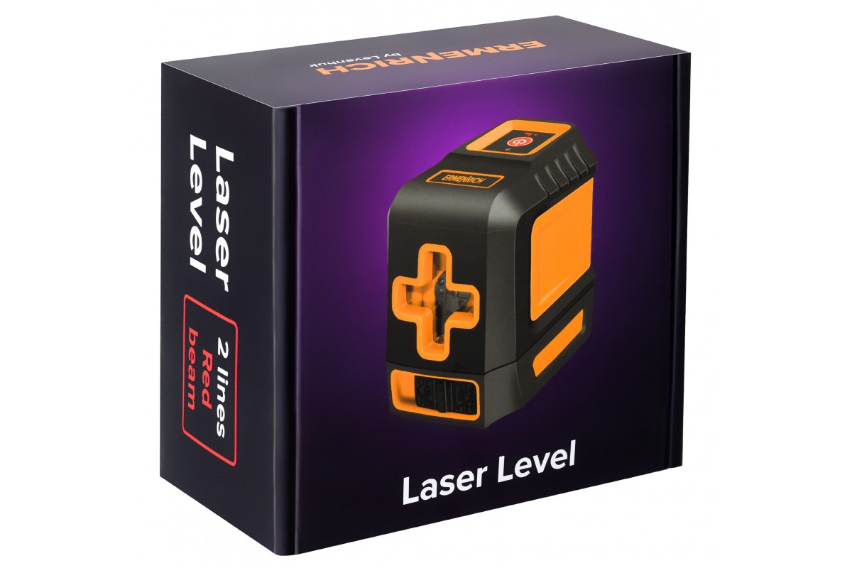 Красный лазерный уровень Ermenrich BASE LT10 выстраивает две линии – горизонтальную и вертикальную. Он поможет качественно выполнить разметку и выравнивание при проведении плиточных, малярных, гипсокартонных и других работ. Прибор может находиться на расстоянии до 15 метров от поверхности, на которую проецируются лазерные плоскости. Угол развертки составляет 130 градусов. Система компенсации обеспечивает самовыравнивание лучей, что гарантирует высокую точность работы.