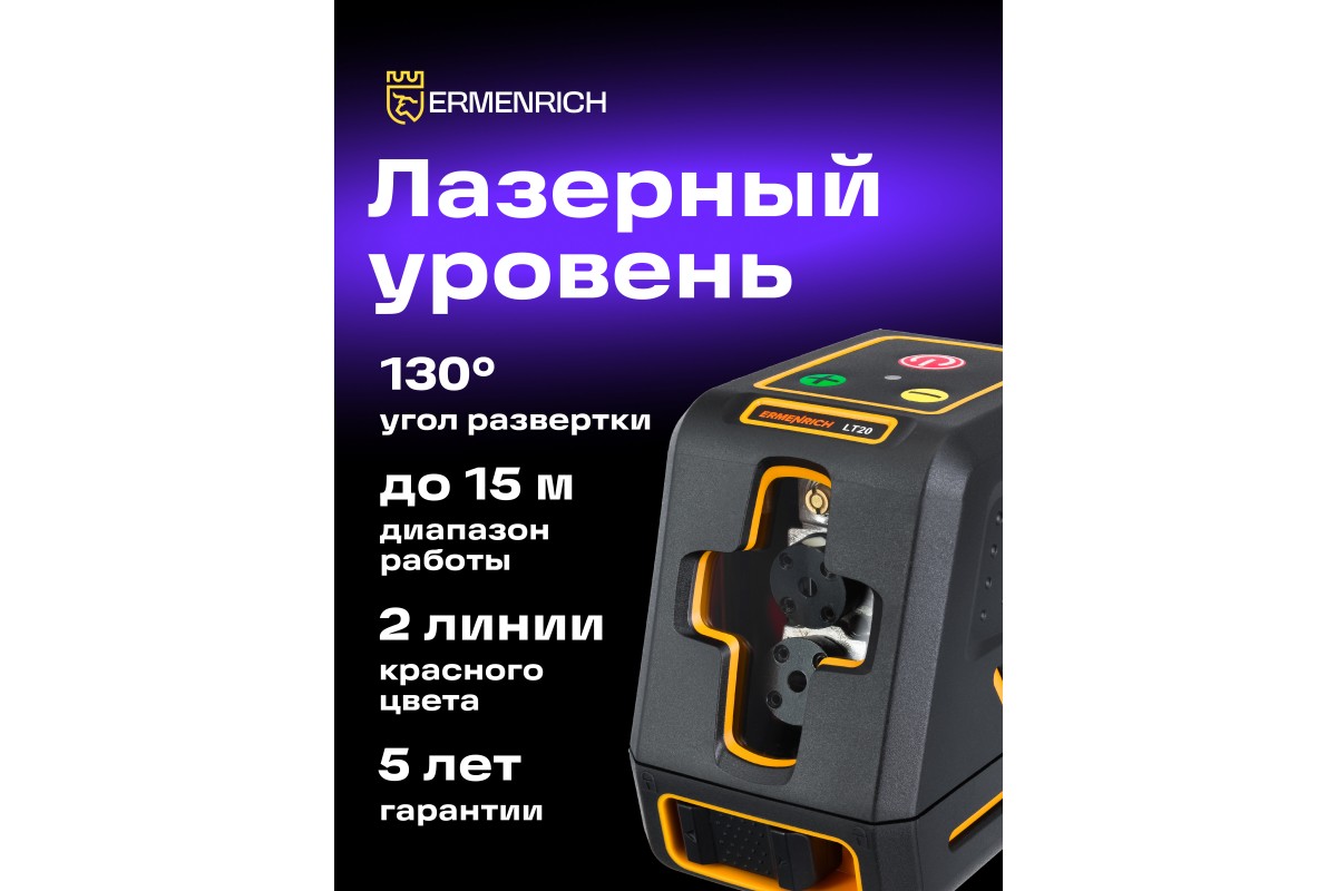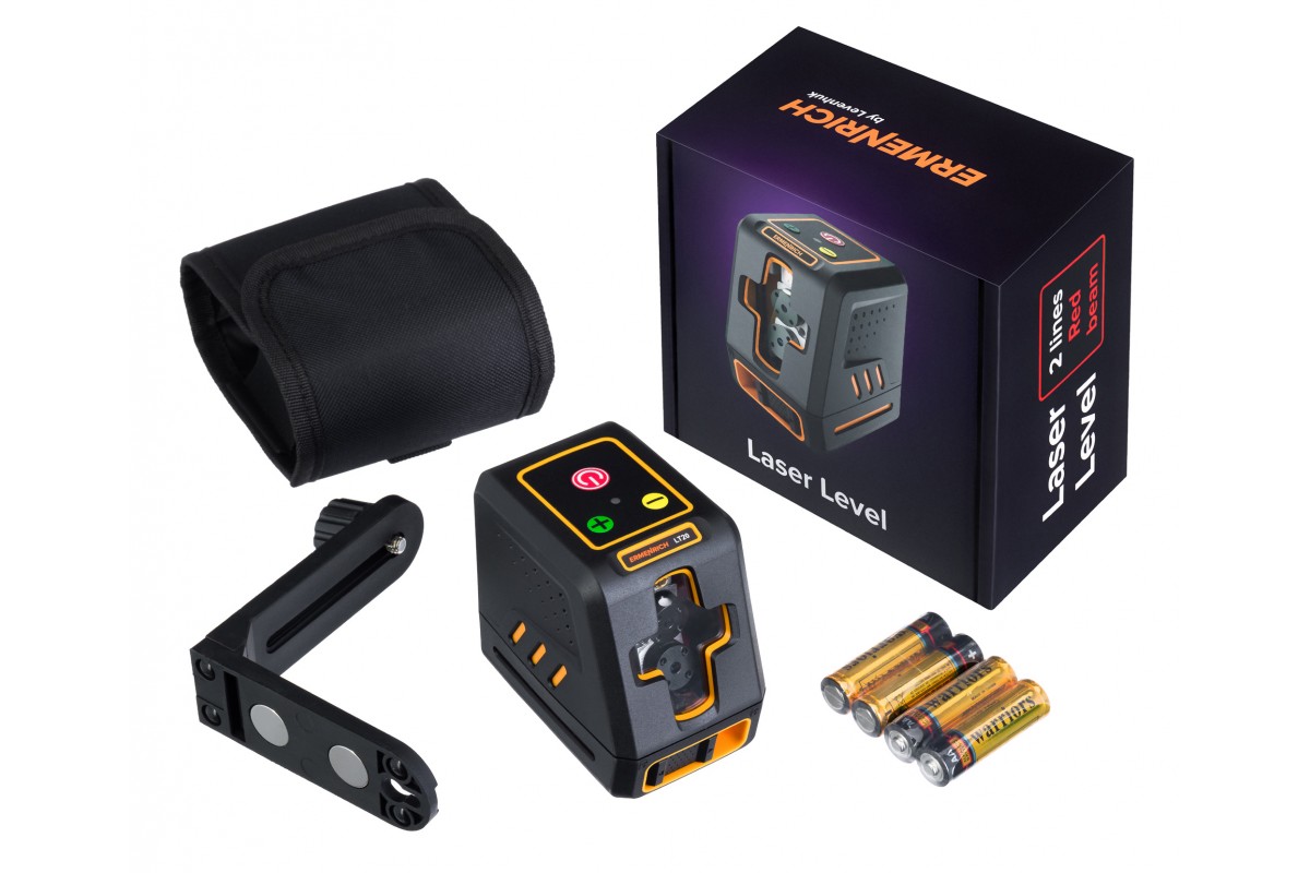 Линейный лазерный уровень Ermenrich BASE LT20 – это универсальный инструмент для строительных, ремонтно-отделочных и ландшафтных работ. Красные лазерные диоды выстраивают две пересекающиеся линии, угол развертки плоскостей – 130 градусов по вертикали и горизонтали. Уровень можно размещать на расстоянии до 15 метров от поверхностей, на которые направлены лучи. Встроенная система компенсации обеспечивает автоматическое выравнивание лазерных линий, благодаря чему разметка выполняется быстро и точно.