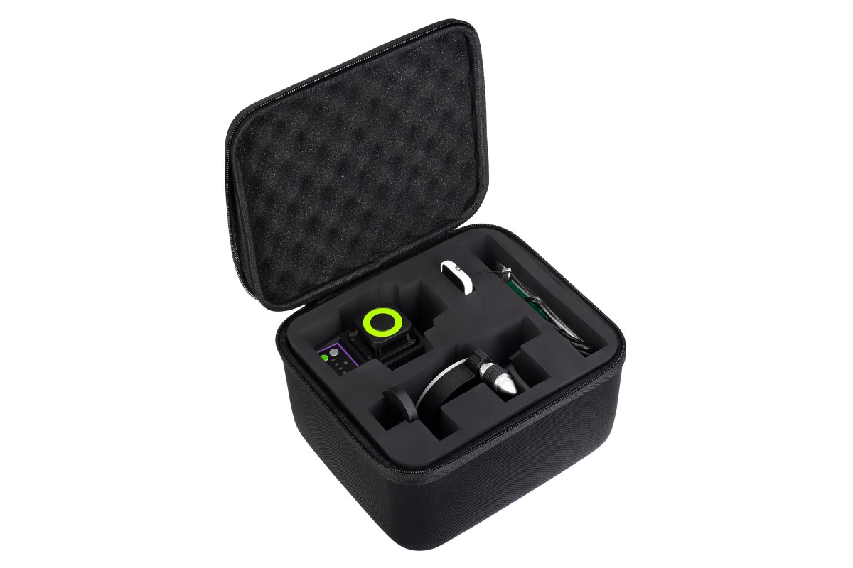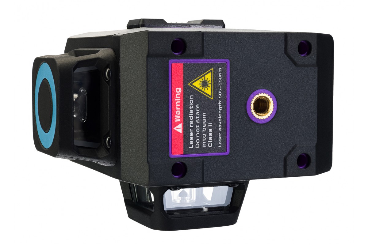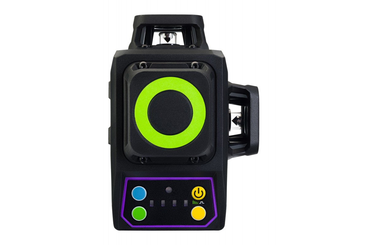 Уровень формирует 12 зеленых линий в трех проекциях, угол развертки составляет 360 градусов как в горизонтальной, так и в обеих вертикальных плоскостях. Благодаря этому можно эффективно выполнять разметку, выравнивание поверхностей и другие операции, требующие высокой точности.
