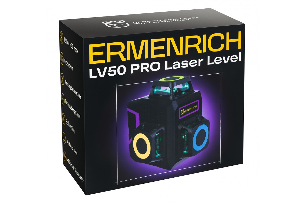 Портативный лазерный уровень Ermenrich PRO LV50 – небольшой (7х7х9,5 см) и легкий (340 г) прибор с дистанционным управлением и мишенью в комплекте. Он станет незаменимым помощником при проведении строительных, ремонтно-отделочных и ландшафтных работ, в том числе высокой сложности. Благодаря компактности и малому весу его удобно использовать на больших объектах – прибор без труда помещается в ладони, переноска с одного места на другое не требует усилий.
