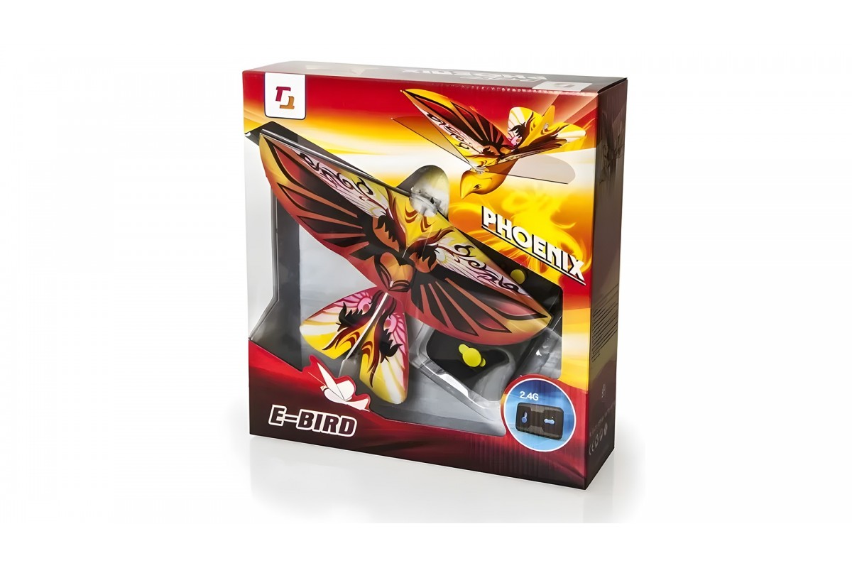 Птица на радиоуправлении E-Bird 2.4G имитирует полет настоящей птицы, за счет бионической механики крыльев, и управляется с помощью пульта на батарейках. Радиоуправляемая птица E-Bird 2.4G издает в полете мелодичные звуки, имитирующие живую природу.