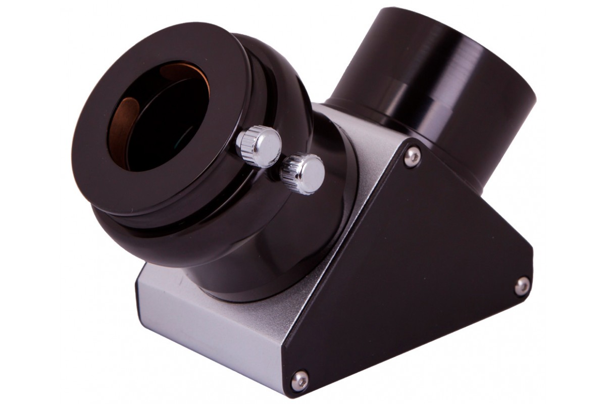 В комплект телескопа входят два важных оптических аксессуара – диагональное зеркало и окуляр. Диагональное зеркало Sky-Watcher 90° 2" помогает приспособить телескоп к наземным наблюдениям, переворачивает изображение в привычное человеческому глазу положение и позволяет вести работу с прибором из более удобной и физиологичной позиции тела. Окуляр Levenhuk Plössl 12 мм, 1,25" с полем зрения 50° помогает получить более четкую и ясную картинку, так как его элементы полностью и многослойно просветлены, а еще делает возможным использование светофильтров (есть специальная резьба).