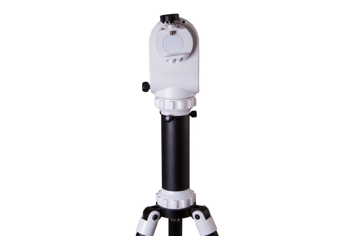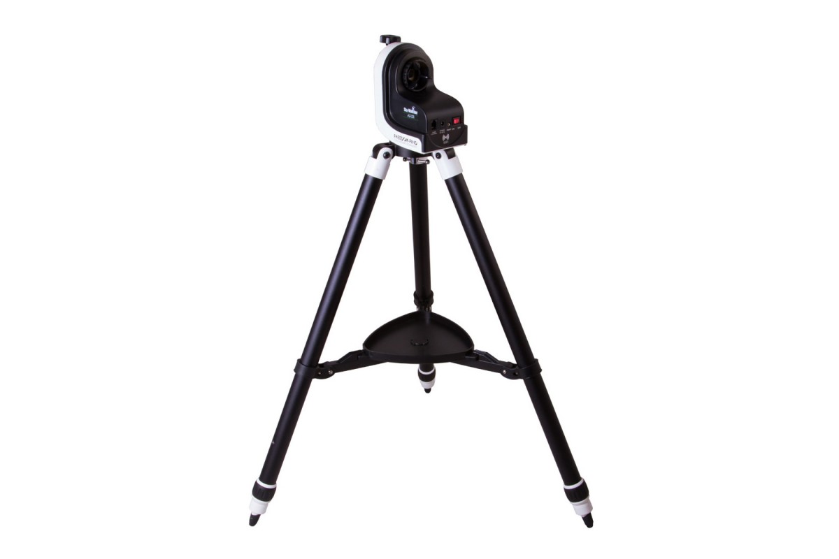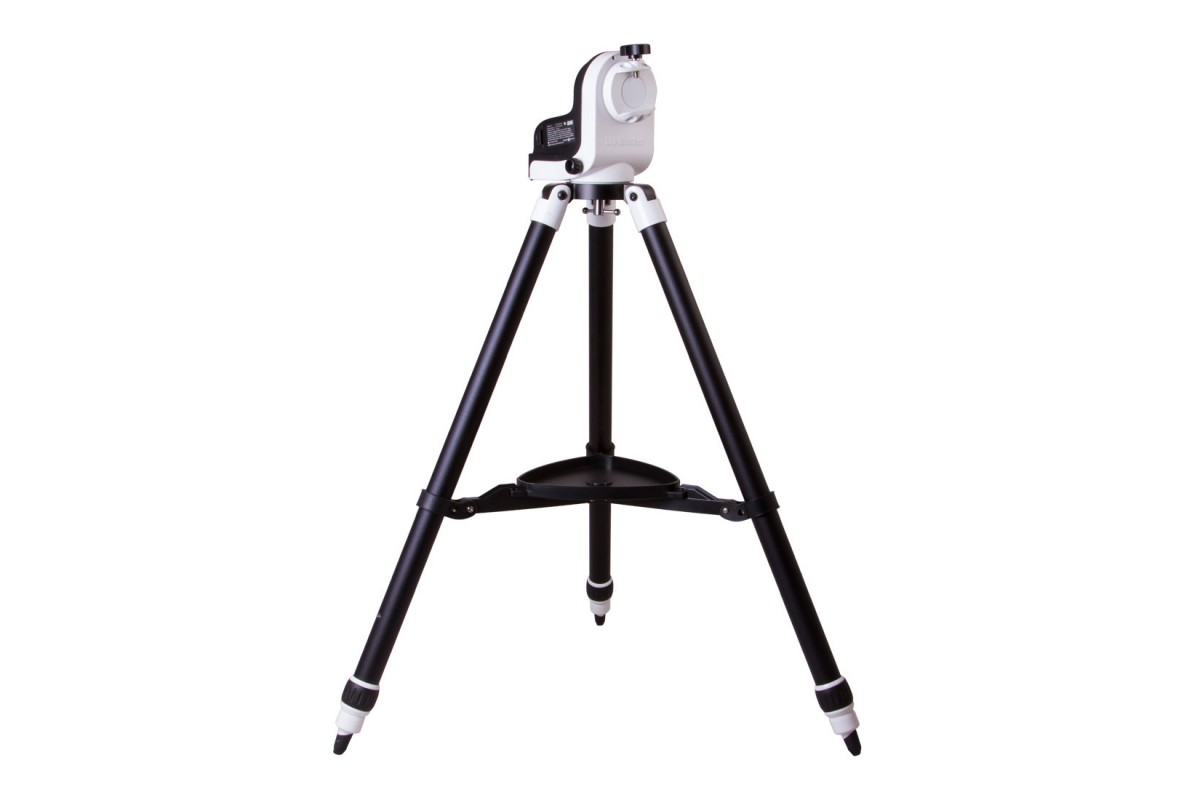 Монтировка, оснащенная электроприводами, проста и удобна в управлении. Наведение телескопа на объекты можно осуществлять прямо со смартфона – он подключается к монтировке через сеть Wi-Fi, а пультом управления выступает мобильное управление. Возможно и подключение классического пульта SynScan. Монтировка оснащена энкодерами, поэтому не требует обновления позиционирования (запоминает данные о первичном позиционировании). Комплектная тренога сделана из алюминия и имеет лоток для аксессуаров.
