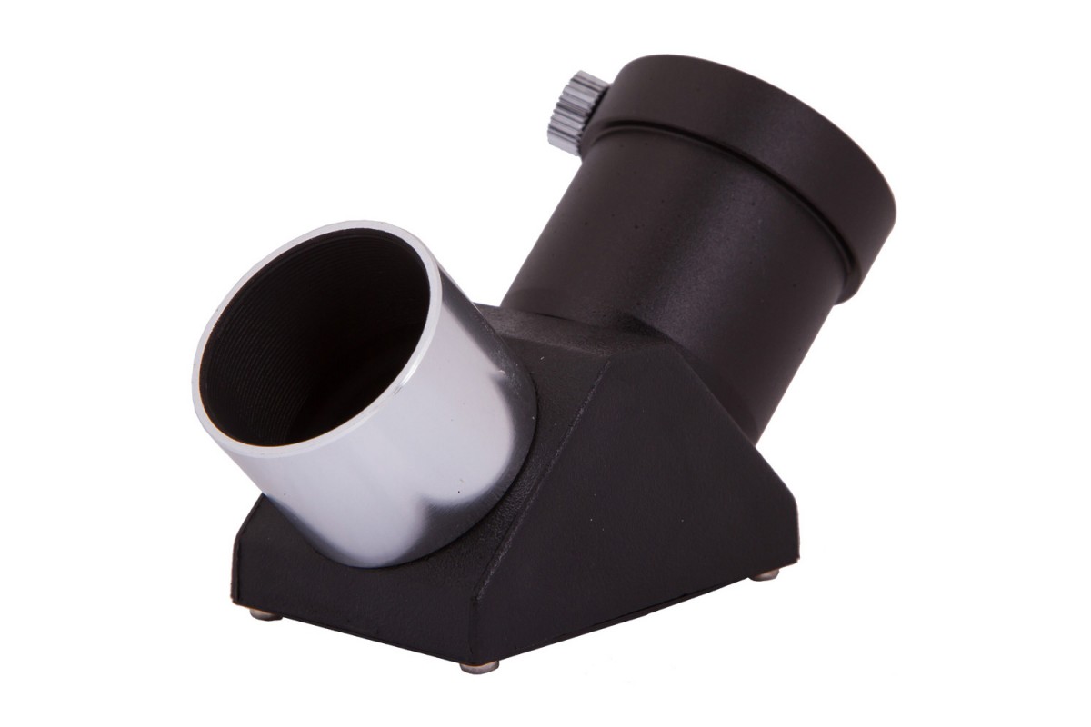 В комплект поставки включена оборачивающая призма для ландшафтных наблюдений. Она поворачивает изображение так, как это привычно взгляду: исправляет зеркальное отражение и перевернутость. Установка призмы на телескоп происходит следующим образом: призму фиксируют в телескопе, окуляр помещают в призму. Еще один интересный предмет в комплектации – кейс для оптической трубы. Он оберегает оптику от повреждений во время перевозки ОТА.