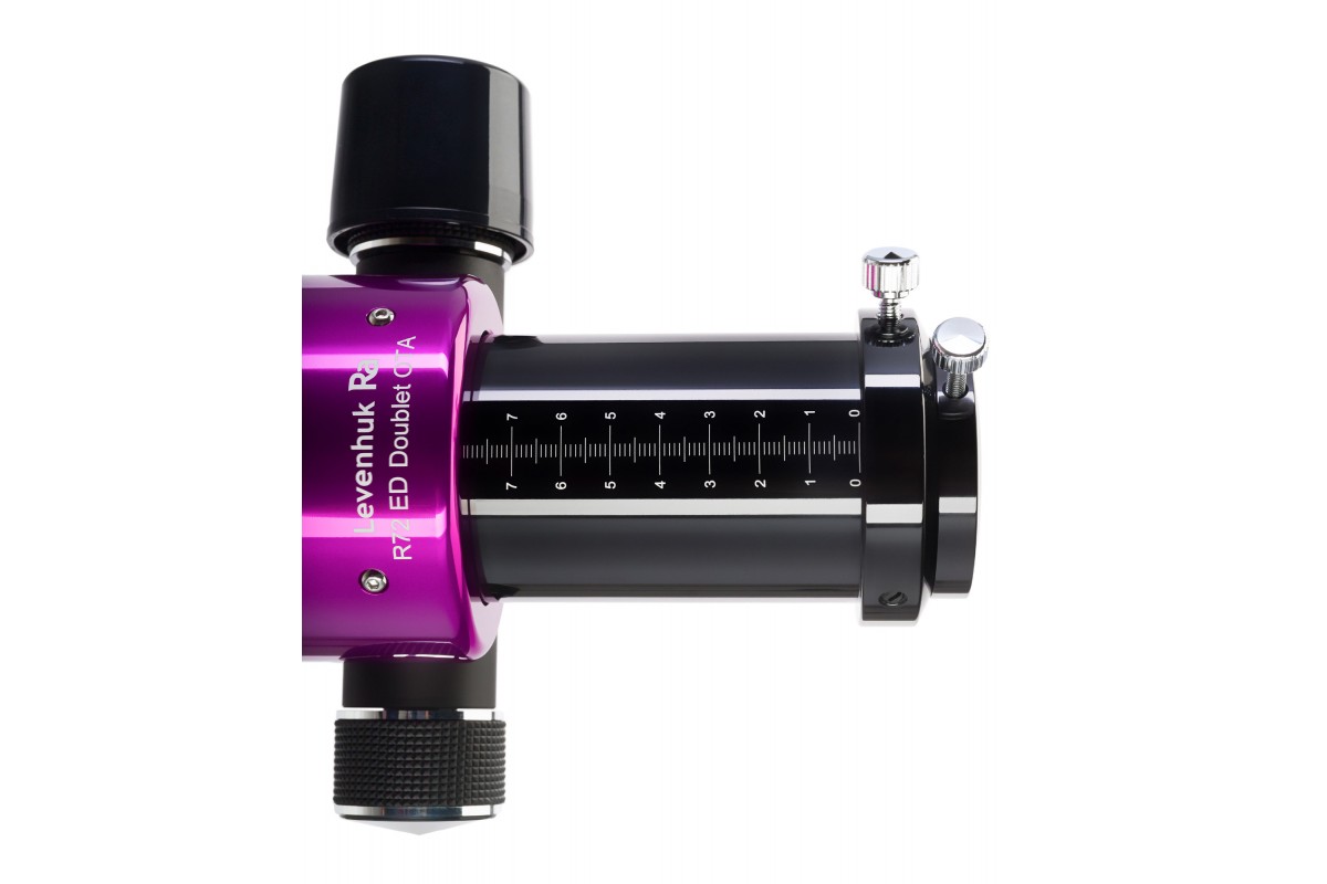 Еще одно неоспоримое достоинство этой оптической трубы – компактность. Благодаря малому фокусному расстоянию она совсем небольшая и удобная в перевозке, что делает ее отличным выбором для выездных наблюдений. Механика тоже отлажена очень хорошо, в том числе ход двухскоростного фокусера Крейфорда с посадочным диаметром 2 дюйма. Настройка резкости происходит плавно и точно. Труба сделана из алюминия и имеет хорошее чернение внутри. Быстросъемное крепление делает Levenhuk Ra R72 ED Doublet OTA совместимой с большинством современных монтировок.