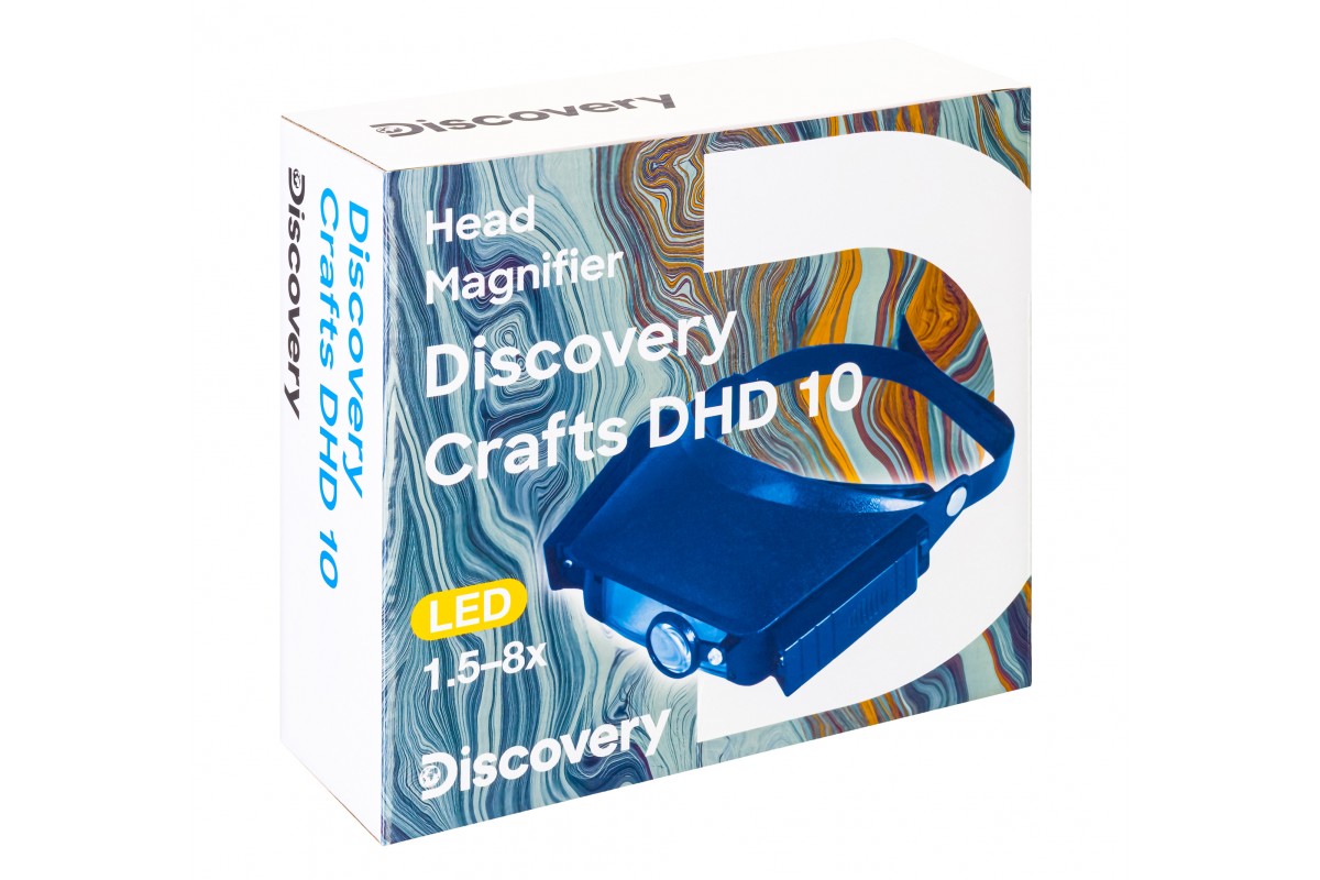 Levenhuk Discovery Crafts DHD 10 – налобная лупа с регулируемым текстильным головным креплением. В ней используются комбинируемые линзы: две основные установлены друг за другом и рассчитаны на оба глаза, дополнительная предназначена только для одного глаза и может откидываться вбок. По-разному сочетая линзы между собой, можно получать разные увеличения. Эта лупа отлично подойдет для работы в мастерской и занятий техническим хобби.