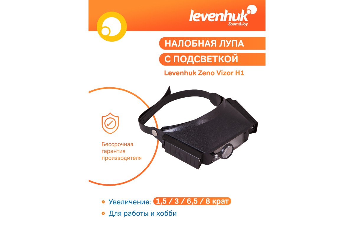 Налобная лупа Levenhuk Zeno Vizor H1 станет вашим верным помощником при работе с мелкими предметами. С ней удобно заниматься рукоделием, работать с мелкими шрифтами, изучать ювелирные изделия, паять платы или ремонтировать небольшие механизмы. Лупа позволяет быстро менять увеличение в диапазоне от 1,5х до 8х. В комплекте идут сменные линзы разной кратности, а для правого глаза лупа снабжена отдельной поворотной линзой.