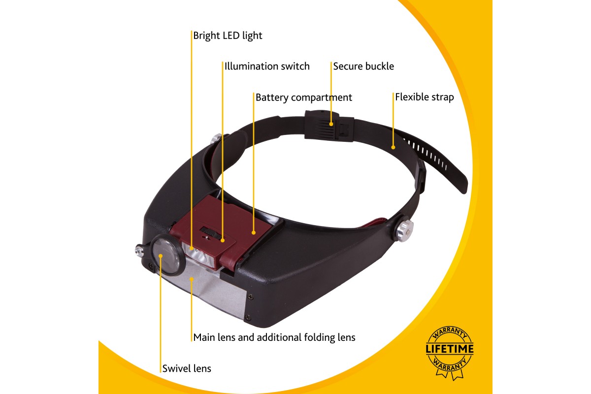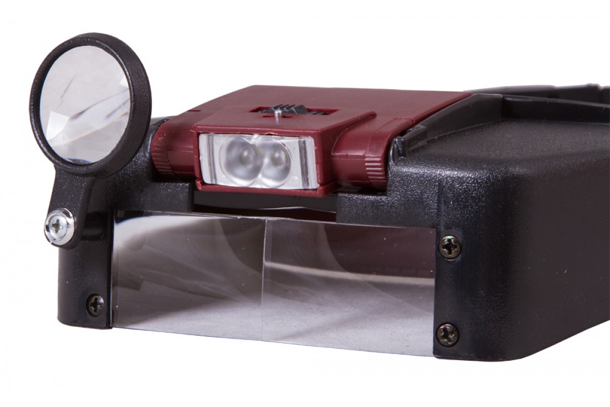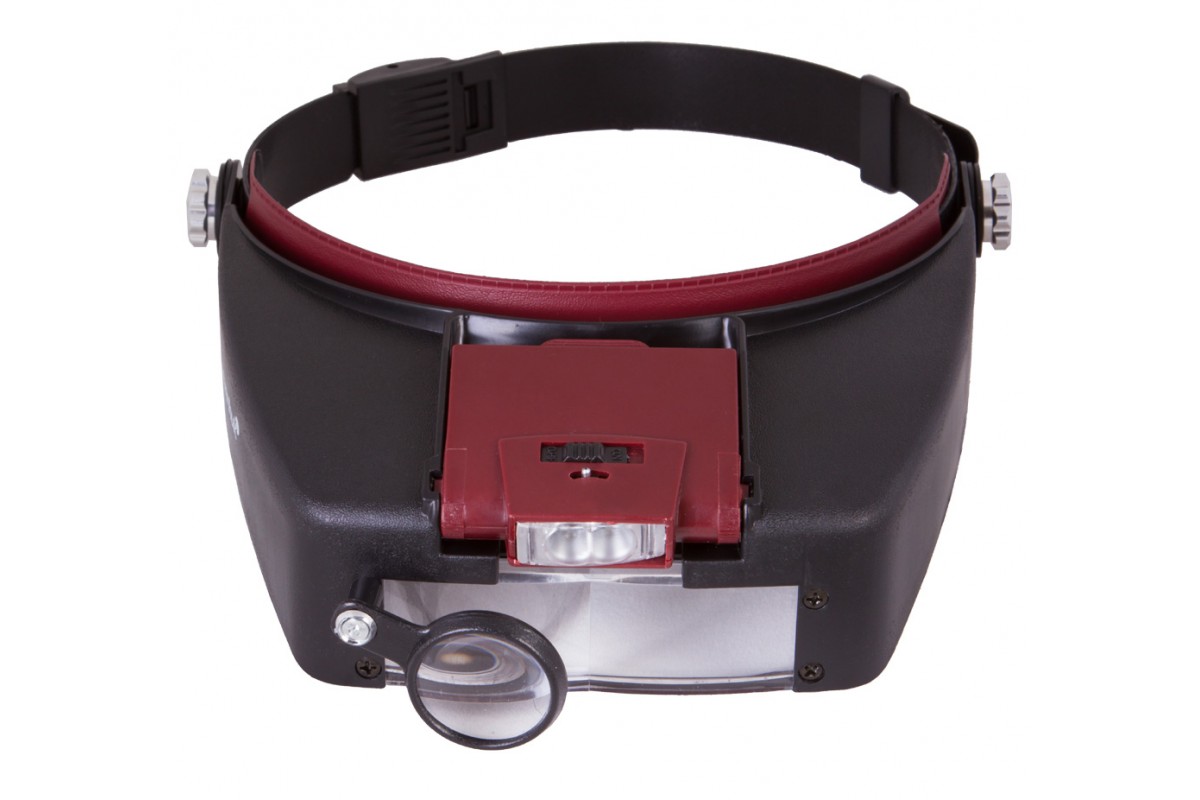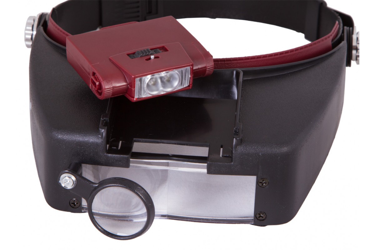 Лупа Levenhuk Zeno Vizor H2 – это налобная лупа для проведения точных работ с мелкими деталями или предметами. Ее можно использовать в профессиональных целях или для выполнения домашних дел. Лупа удобно фиксируется на голове при помощи гибкого ремня и позволяет выбирать одно из четырех фиксированных увеличений в диапазоне от 1,5х до 8х. Смена кратности происходит путем замены основной линзы. Для правого глаза есть отдельная поворотная линза.
