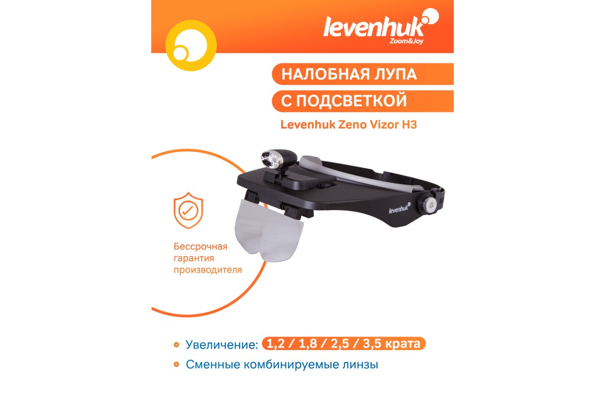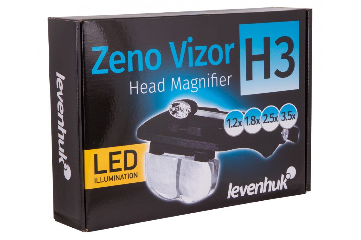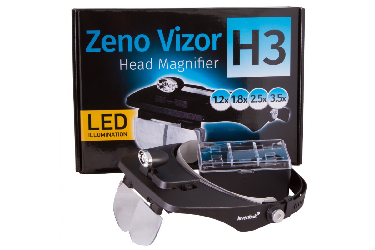 Лупа Levenhuk Zeno Vizor H3 – это лупа со сменными линзами. Чтобы сменить кратность лупы, необходимо установить подходящую линзу из прилагаемого набора. Диапазон увеличений: от 1,2 до 3,5 крат. Материал линз – оптический пластик.