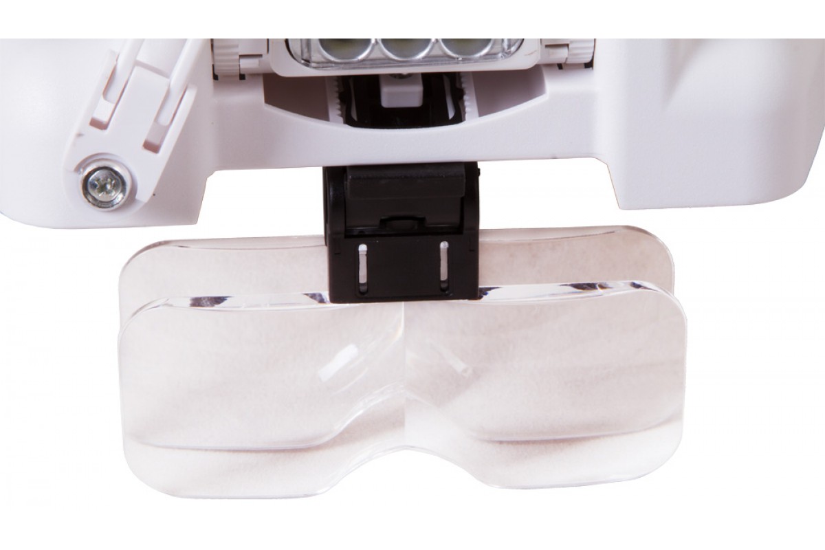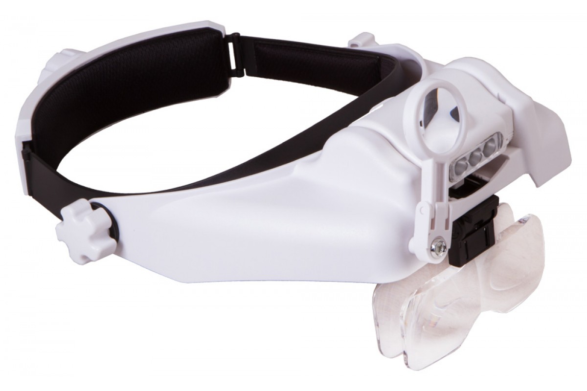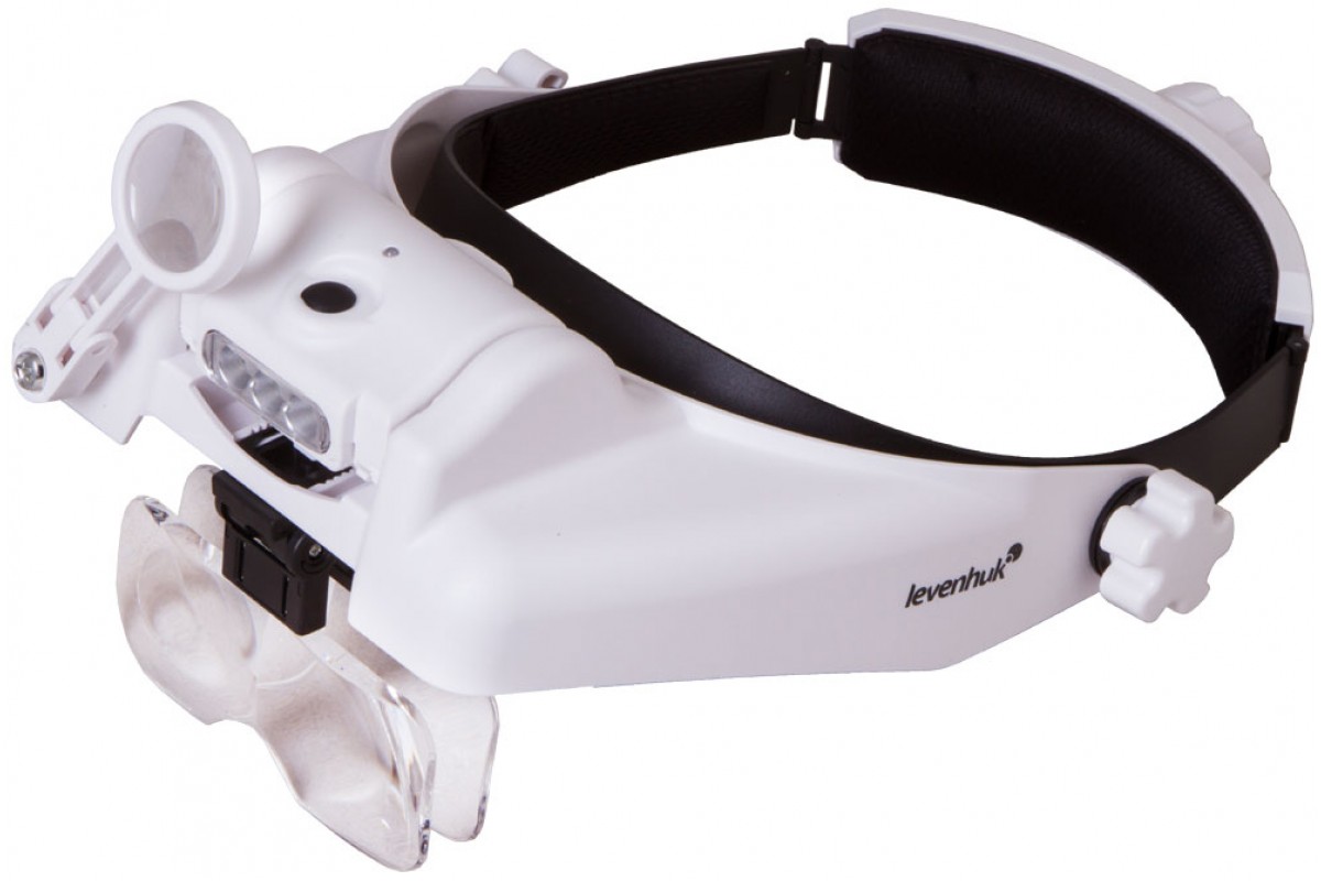 Levenhuk Zeno Vizor HR6 – налобная лупа для выполнения точных работ любого уровня сложности. На нее можно устанавливать сразу две линзы, достигая, таким образом, больших увеличений. Всего в комплект поставки включено пять линз разной кратности. Мощность оптики можно усилить и при помощи дополнительной линзы для правого глаза. Она дает еще 8 крат к увеличению. Все линзы можно отвернуть в сторону при необходимости, тогда на рабочую область получится взглянуть невооруженным глазом. А однократная линза, входящая в комплект поставки, способна превратить лупу в защитные очки для монтажных работ.