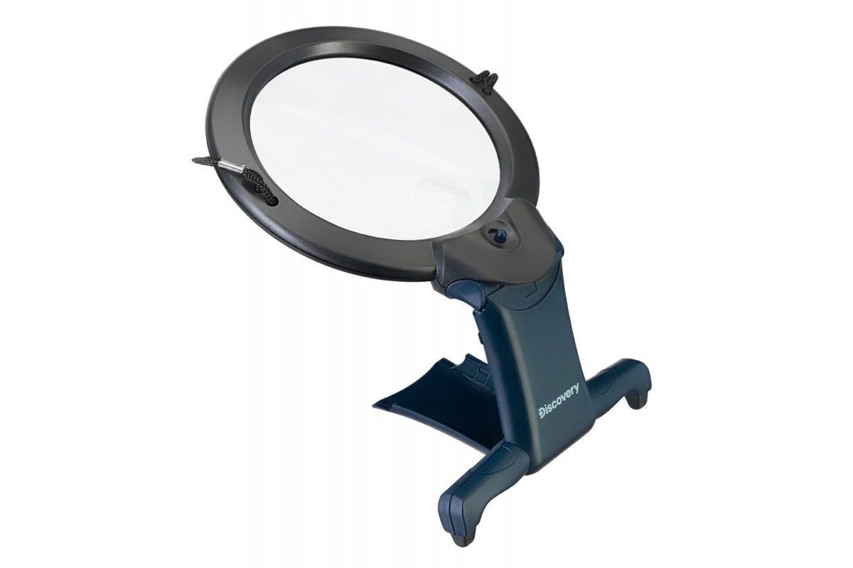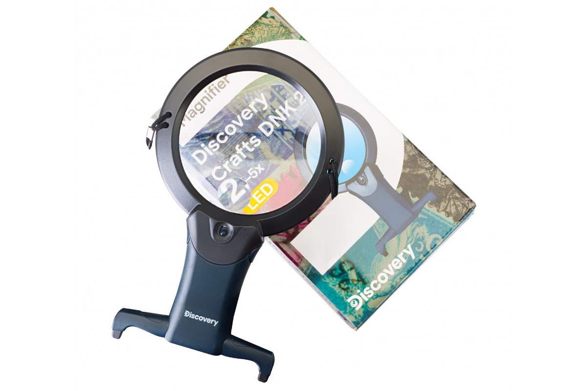 Лупа Levenhuk Discovery Crafts DNK 20 снабжена не только нашейным шнурком, но и подставкой, поэтому может устанавливаться на стол. Этот оптический инструмент идеально подходит для занятий рукоделием: основная линза имеет большой диаметр (100 мм), лупа не занимает руки, есть встроенная подсветка. Также эту лупу можно использовать для рассматривания фотоальбомов, мелких текстов, чертежей и карт. Это хороший выбор для людей с неидеальным зрением, которые хотят заниматься любимыми хобби.