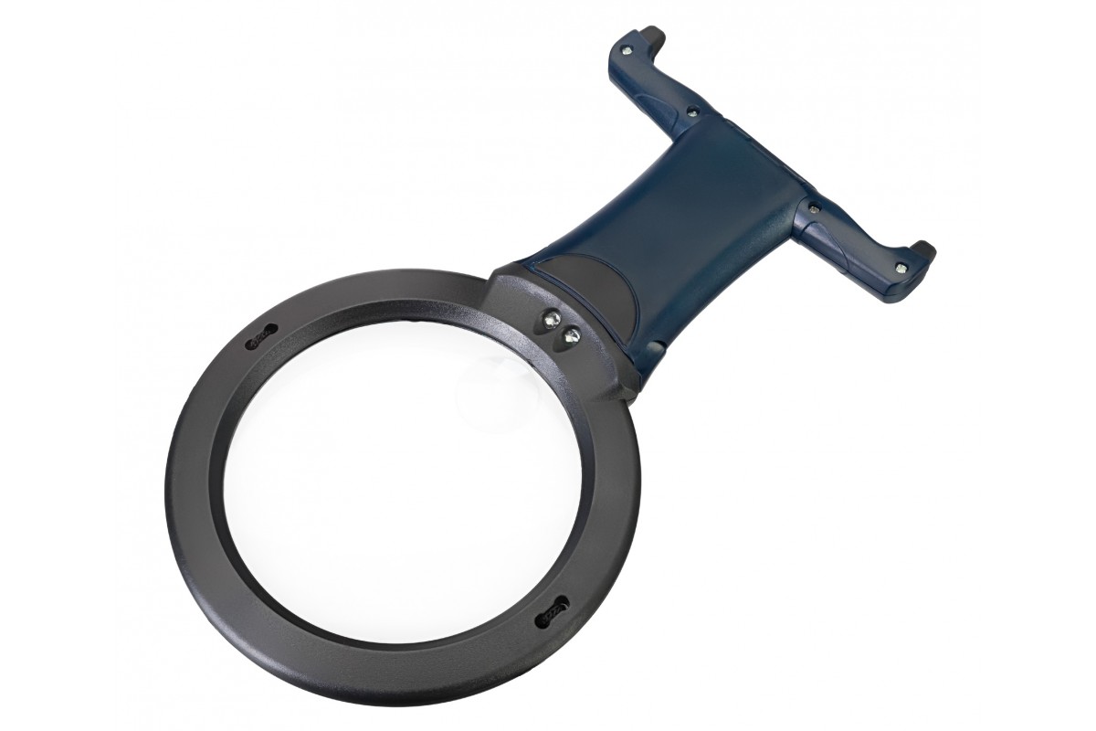 По основному диаметру линза дает увеличение 2,5 крата, по малому (25 мм) – 5 крат. Оптика сделана из прочного и легкого полимерного оптического стекла, передает контрастную и детализированную картинку без искажений. Светодиодная подсветка работает от батареек, создает равномерное освещение рабочей области и позволяет работать даже в полной темноте.