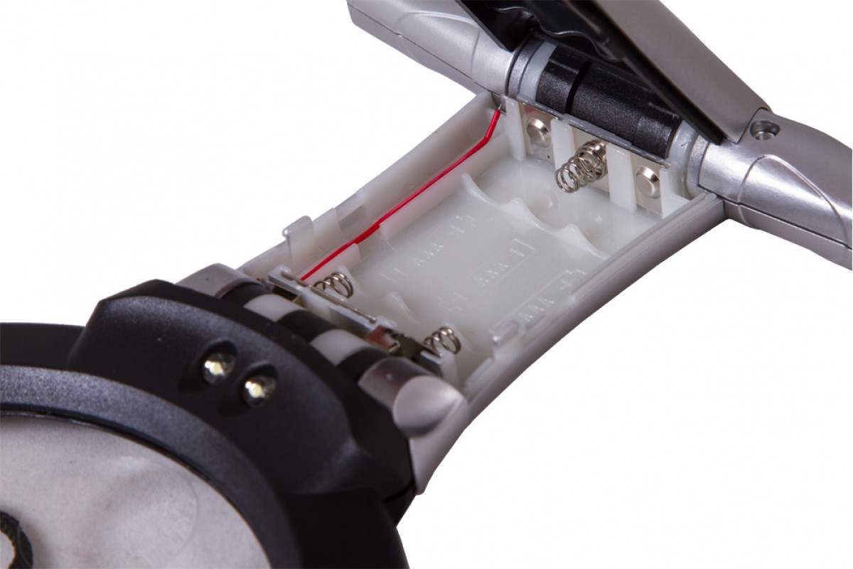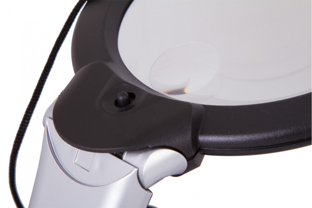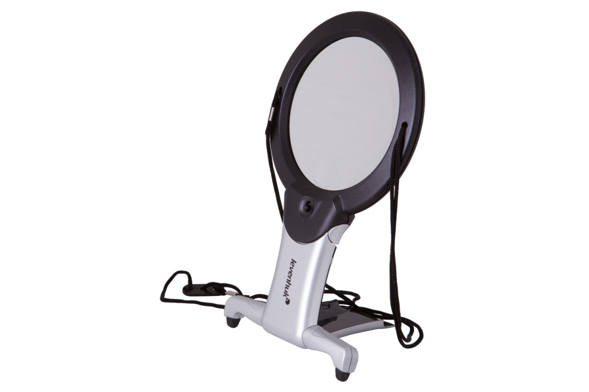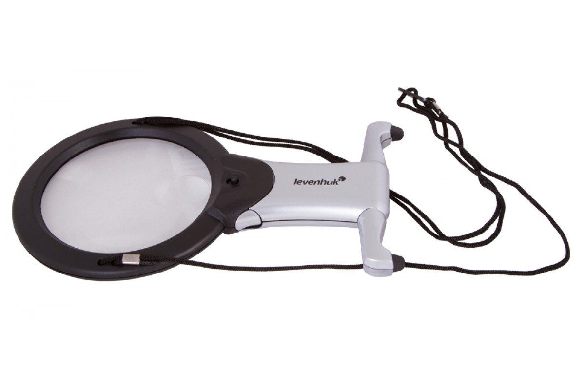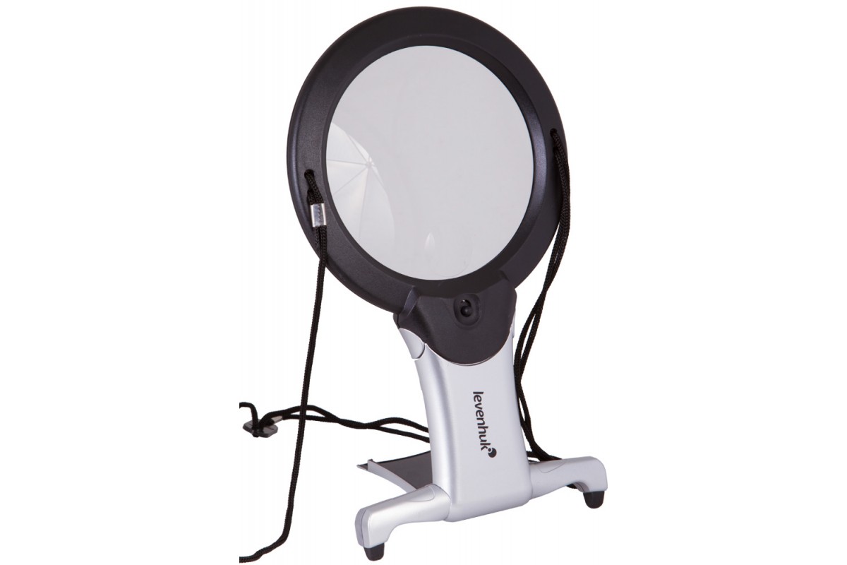 Лупа Levenhuk Zeno Vizor N2 – лупа с бифокальной линзой и встроенной светодиодной подсветкой. Ее можно носить на шее – в комплекте есть шейный ремешок – или же устанавливать на стол – лупа комплектуется специальной подставкой. Подсветка яркая: два светодиода хорошо освещают все пространство под основной линзой и позволяют работать даже без внешнего освещения.