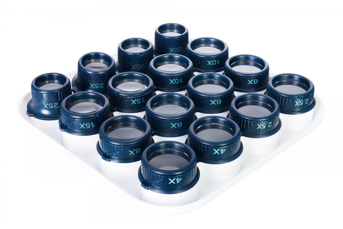 • Сменные линзы, увеличение от 2,5 до 25 крат