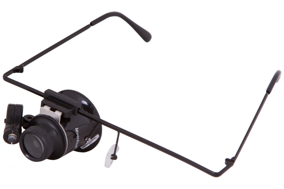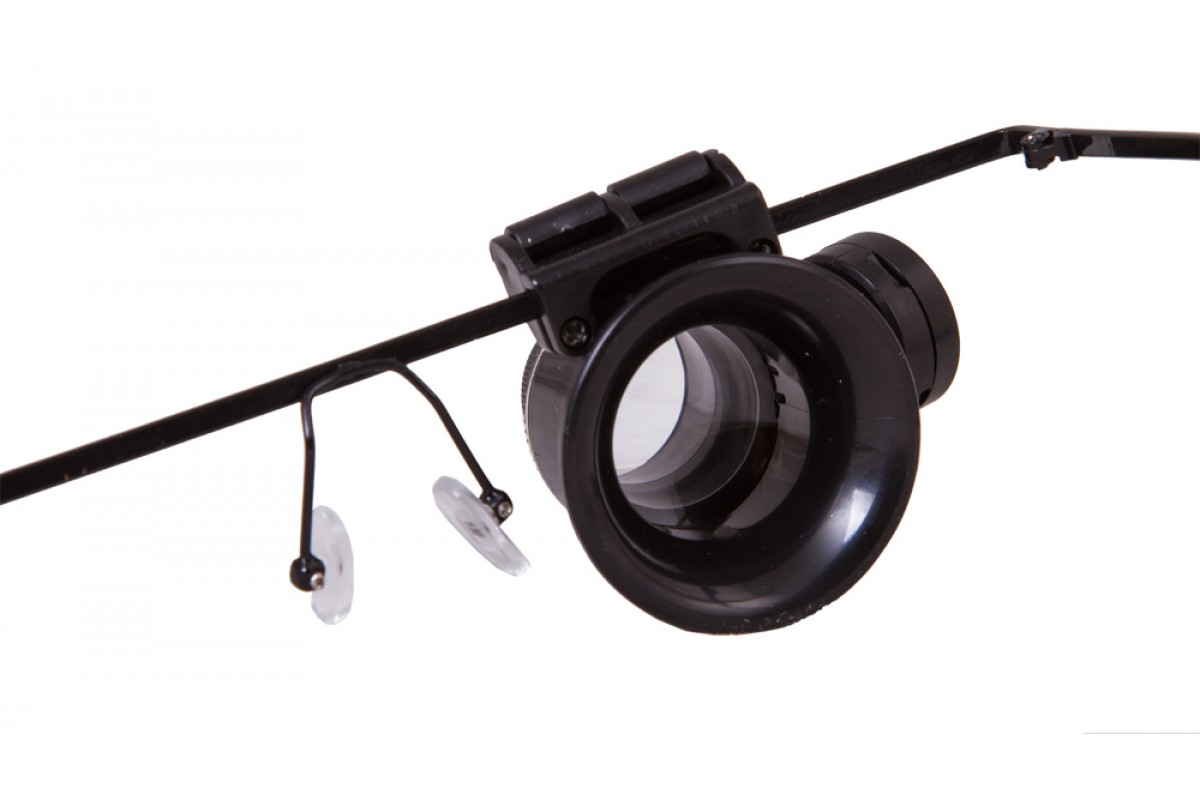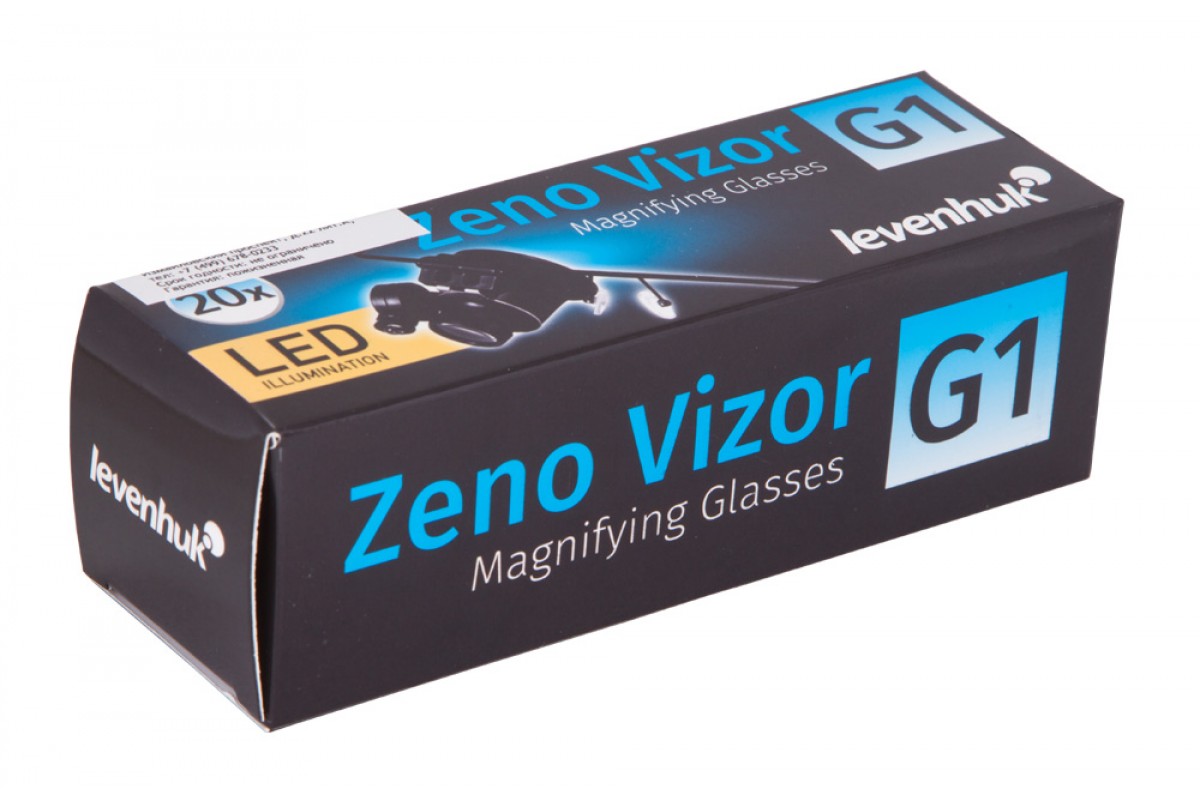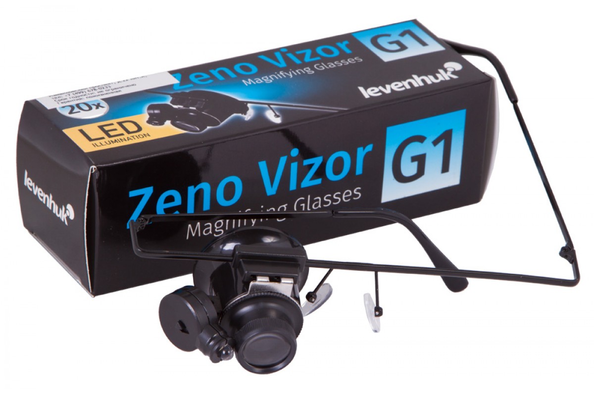 Лупа Levenhuk Zeno Vizor G1 – это лупа на очковой оправе, которая надевается как обычные очки. Линзу с 20-кратным увеличением легко передвигать по оправе влево или вправо или даже убрать в сторону, если возникнет такая необходимость. Рядом с линзой есть небольшая светодиодная подсветка. При плохом освещении ее яркости хватит, чтобы хорошо осветить всю рабочую площадь.
