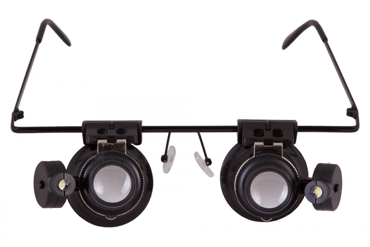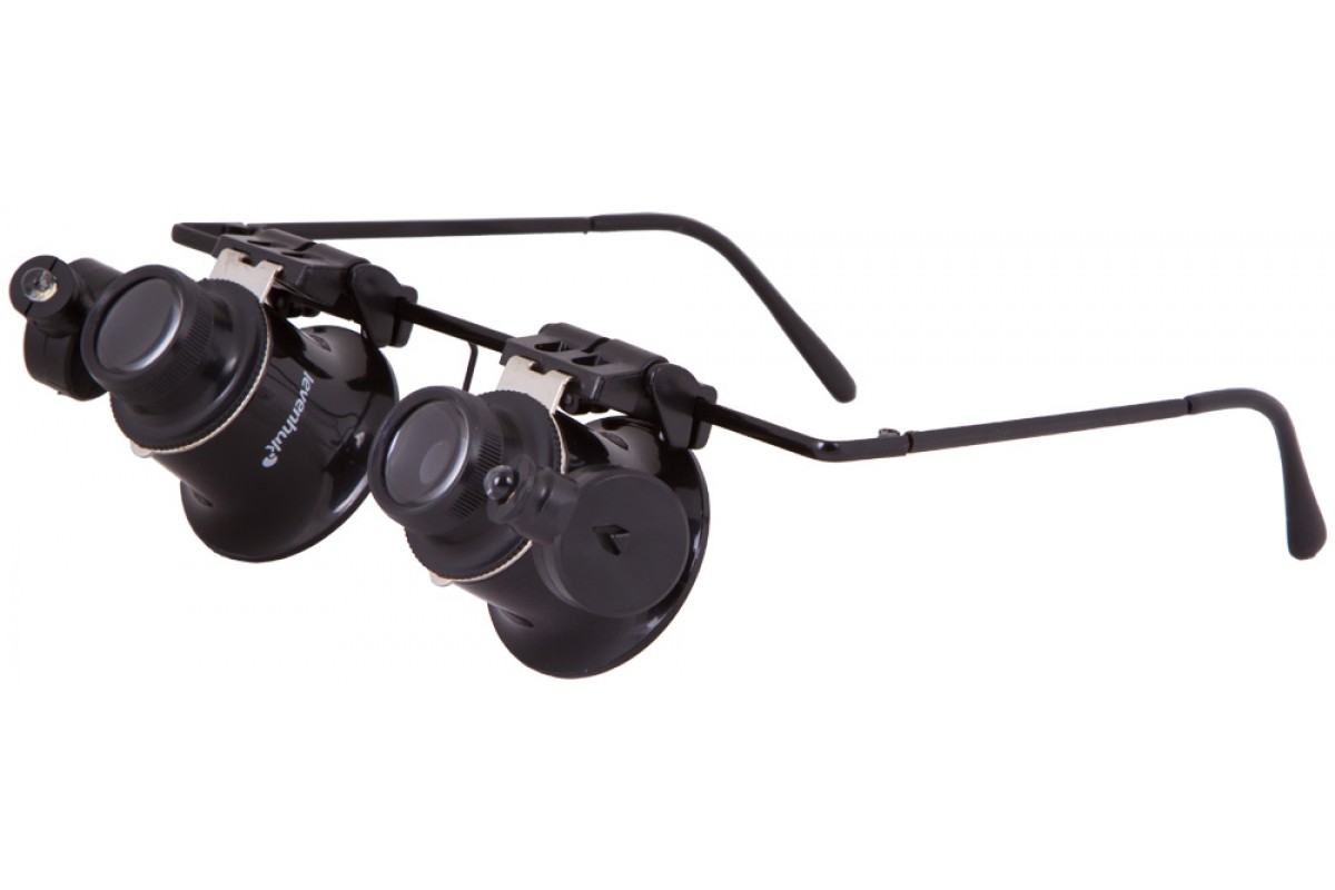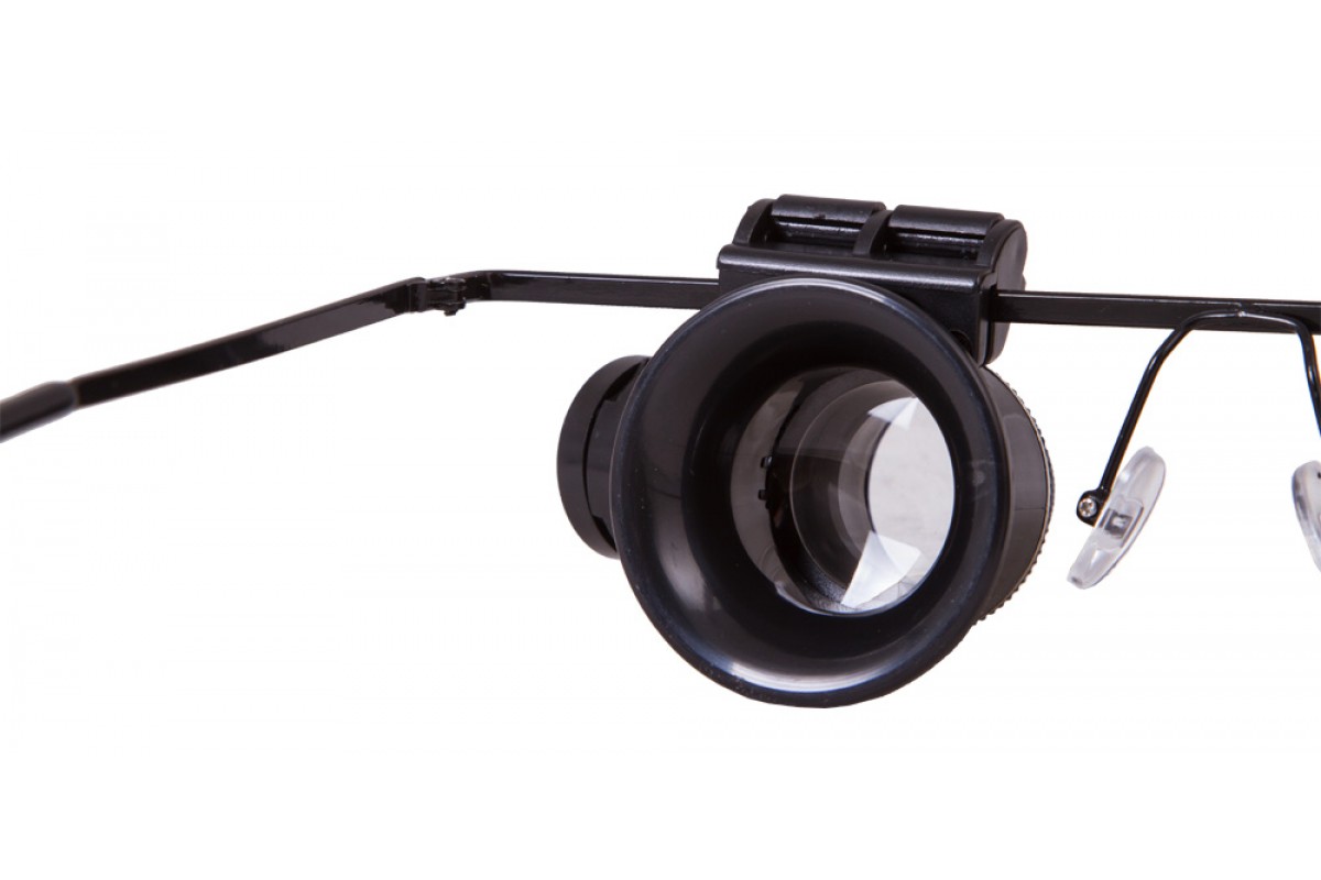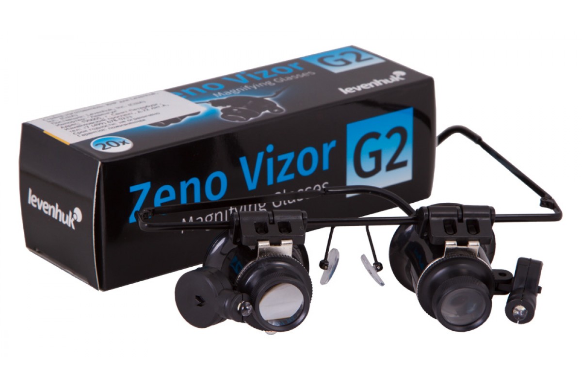 Лупа-очки Levenhuk Zeno Vizor G2 – 20-кратная лупа на очковой оправе с парой независимых линз. Линзы можно перемещать по оправе, точно регулируя расстояние между ними. Есть возможность откинуть линзы, если требуется смотреть без увеличения.