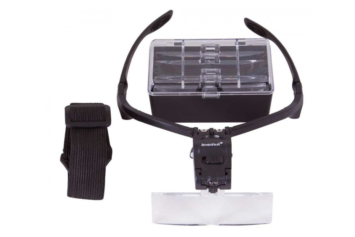 Основная особенность лупы Levenhuk Zeno Vizor G3 – сменные крепления. Вы можете установить линзу на очковую оправу или зафиксировать ее на мягком нейлоновом ремне, крепящемся на голове. Оба крепления уже входят в комплект.