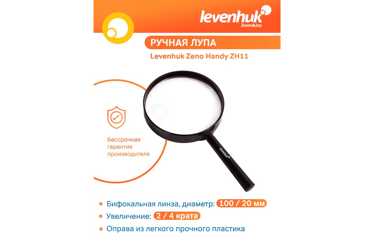 Лупа Levenhuk Zeno Handy ZH11 сделана из пластика, помещена в тонкую оправу и снабжена эргономичной ручкой. Она станет идеальным помощником в хобби, чтении, рукоделии или выполнении каждодневных дел по дому.