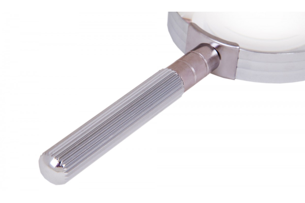 Оправа и ручка лупы сделаны из металла.