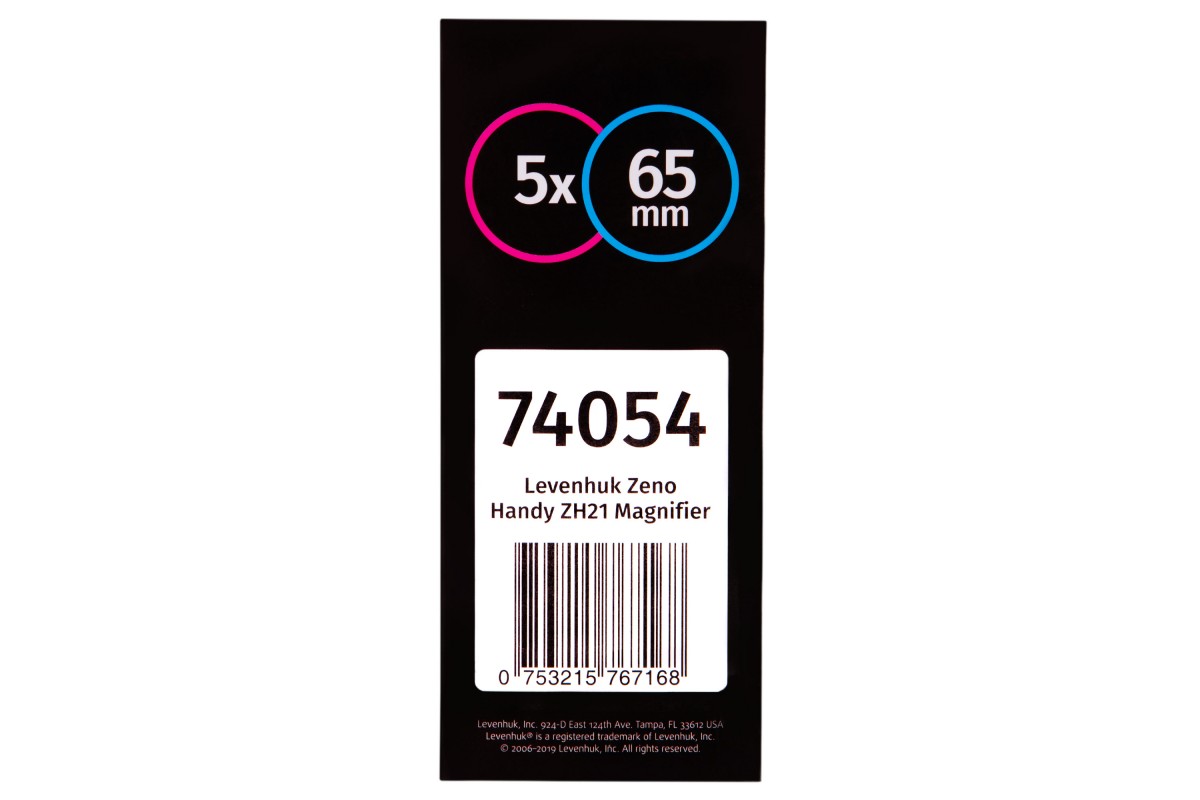 Ручная лупа Levenhuk Zeno Handy ZH21 – это верный помощник в доме и на работе. С ее помощью можно изучать окружающий мир на увеличении 5 крат. Линза сделана из оптического пластика и позволяет охватывать одним взглядом область размером до 65 мм. Эта лупа идеально подходит для чтения газет и журналов, рассматривания фотографий и иллюстраций в книгах, изучения дефектов тканей и ювелирных украшений.