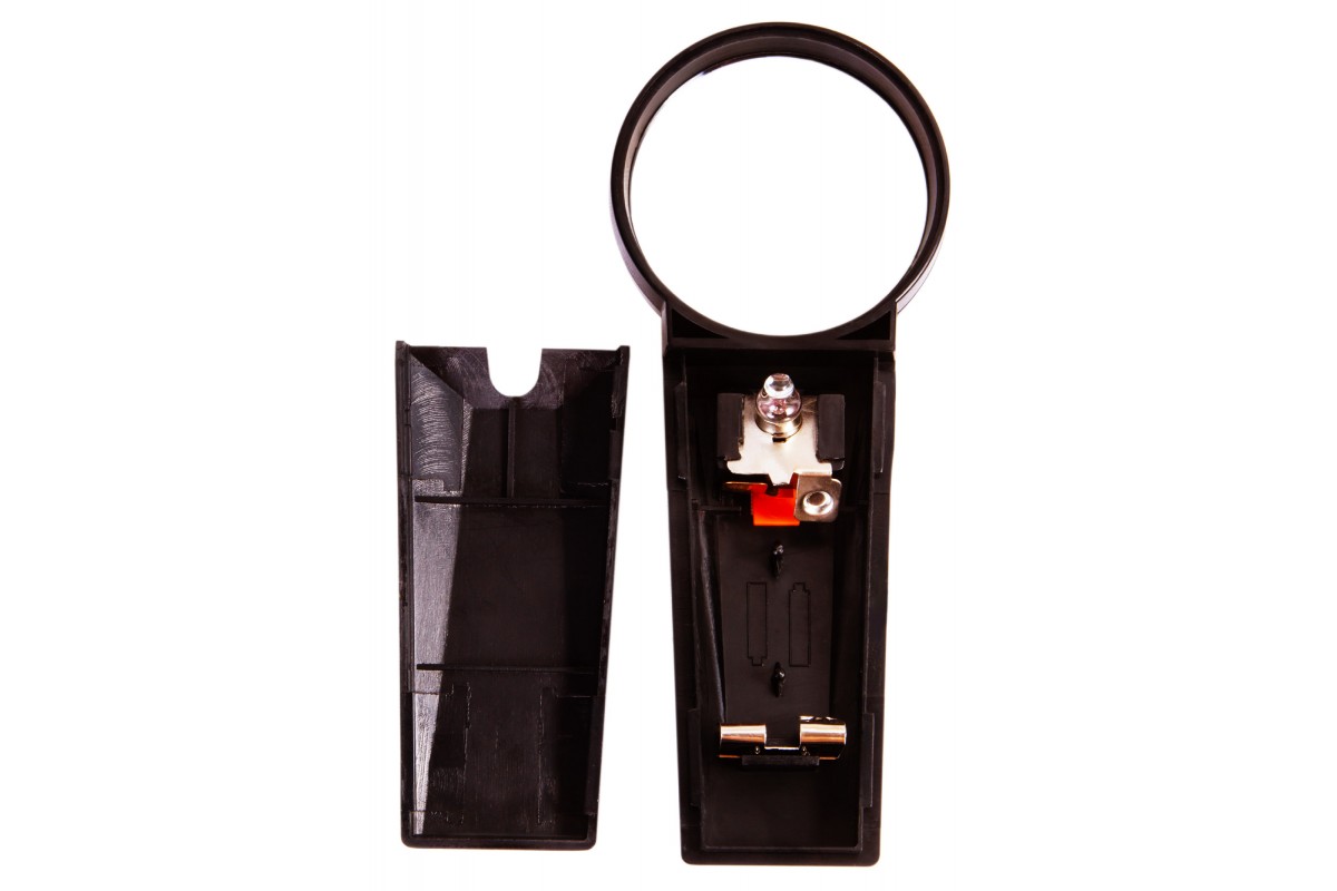 Линза сделана из пластика, остальные элементы конструкции – тоже пластиковые. Лупа легкая, но надежная и удобно лежит в руке. Для работы подсветки требуются батарейки (приобретаются отдельно).