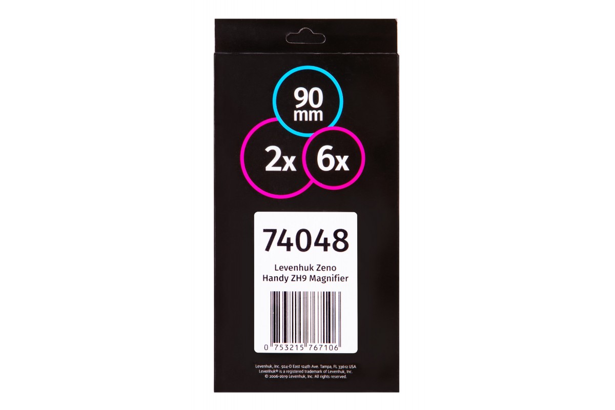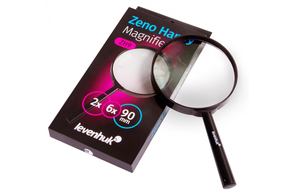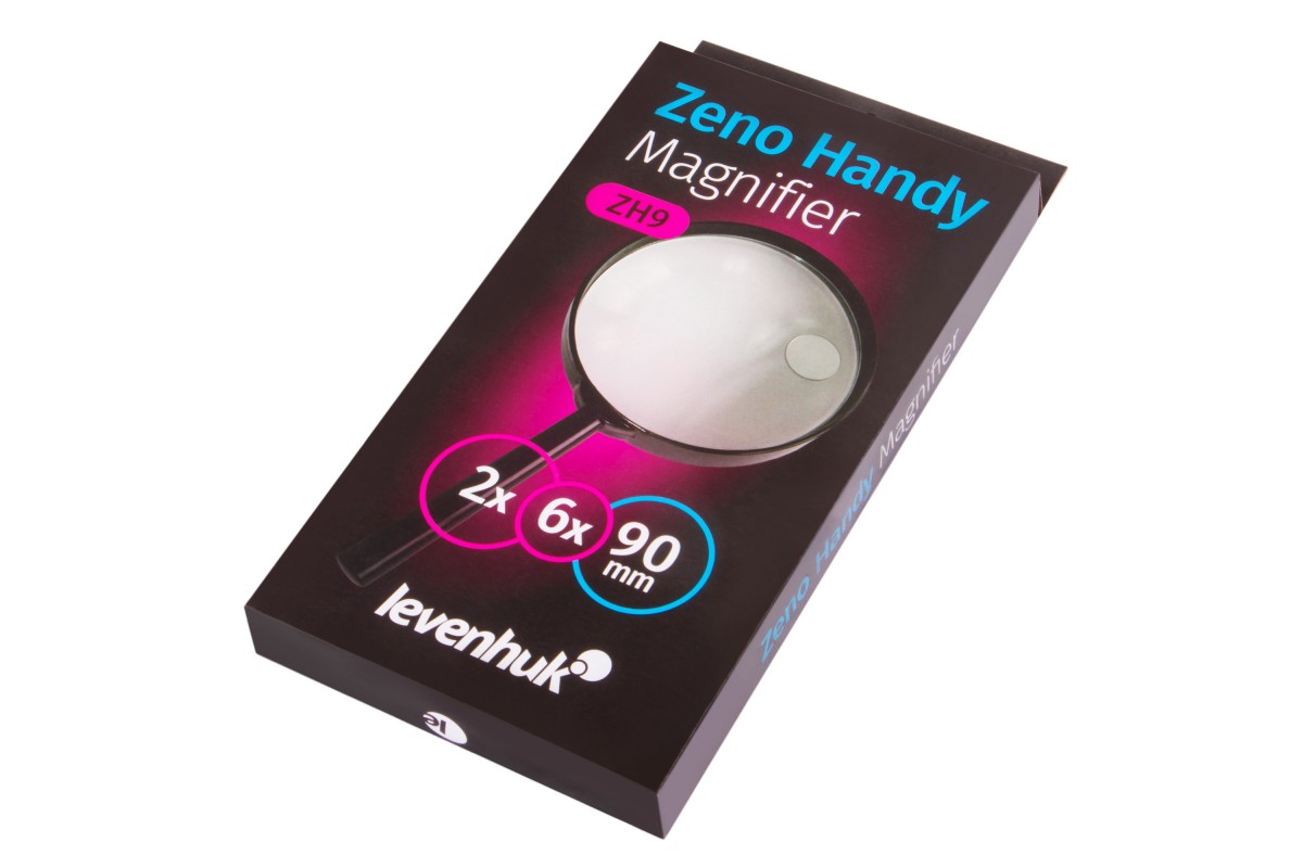 Просмотровая лупа Levenhuk Zeno Handy ZH9 – это классическая ручная лупа с двумя линзами. Линза большего диаметра (90 мм) дает увеличение 2 крата, линза меньшего (21 мм) – 6 крат. С помощью этой лупы можно читать мелкий текст, рассматривать поверхностные дефекты на тканях и мебели, изучать ювелирные изделия или другие небольшие объекты.