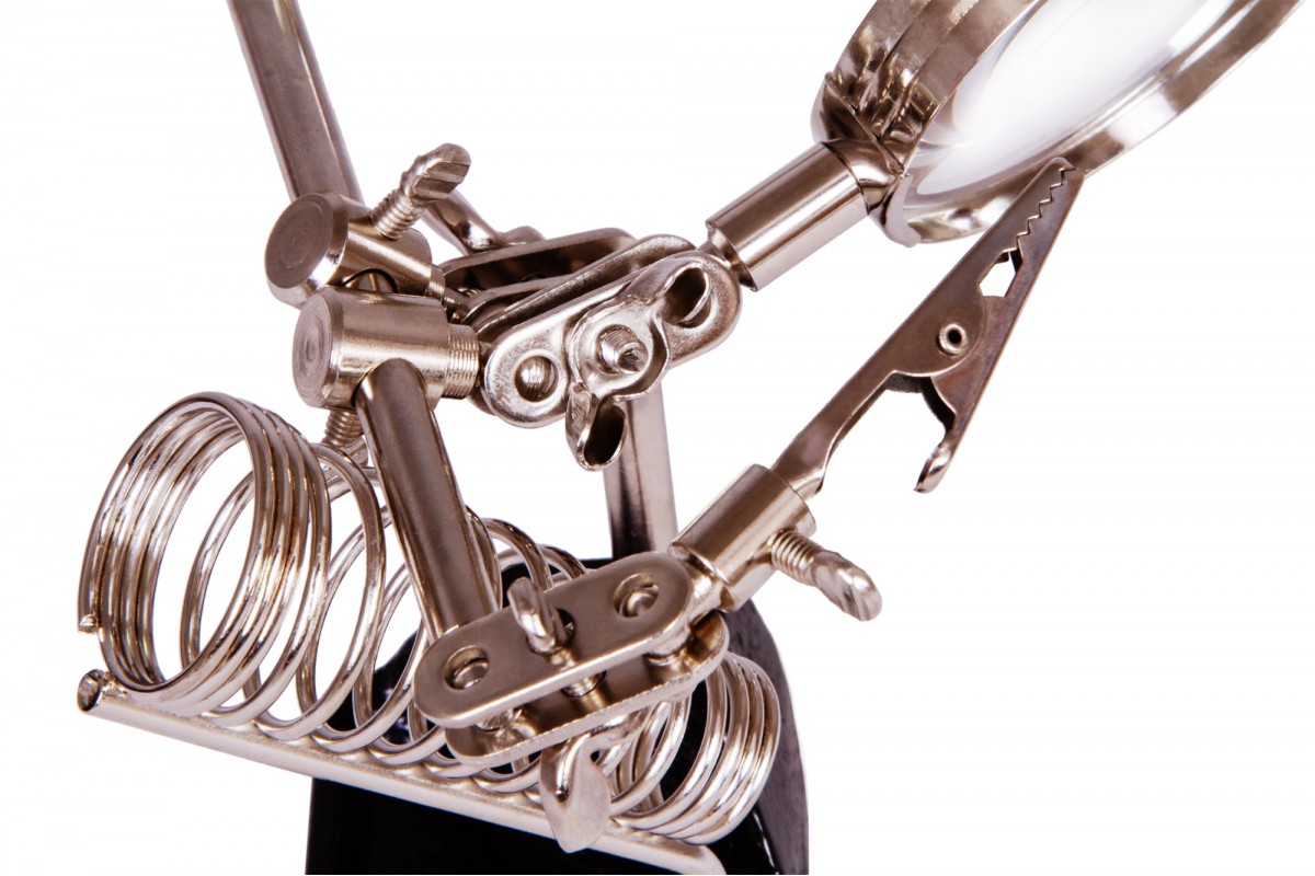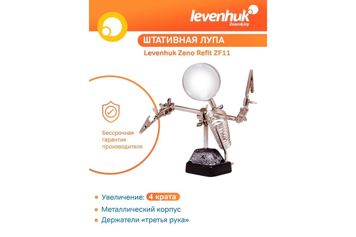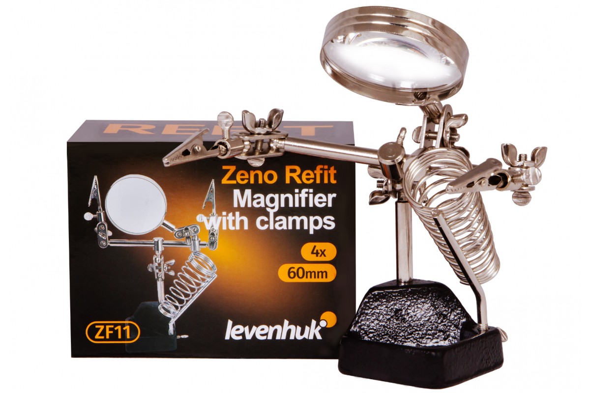 Лупа на штативе Levenhuk Zeno Refit ZF11 – оптический инструмент с держателями, который отлично подойдет для ювелирной, часовой или ремонтной мастерской. В домашних условиях лупу можно использовать для рукоделия и творчества. Благодаря наличию пары держателей лупа позволяет оставить обе руки свободными для работы с небольшими деталями – сборки, разборки, покраски, пайки и других манипуляций. Фиксация предметов производится с помощью зажимов-прищепок.