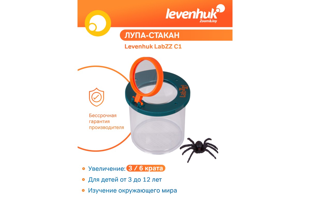 Лупа-стакан Levenhuk LabZZ C1 – настоящая находка для любознательного ребенка. Небольшой стакан имеет прозрачные стенки, а в верхней части – увеличительную линзу. Любых насекомых или других небольших созданий можно изучать со всех сторон и в мельчайших деталях. В лупу-стакан поместятся жуки, пауки, мухи и даже бабочки. Чтобы исследовать водных обитателей, стакан можно заполнить водой. Лупа-стакан Levenhuk LabZZ C1 предназначена для детей от 3 до 12 лет.