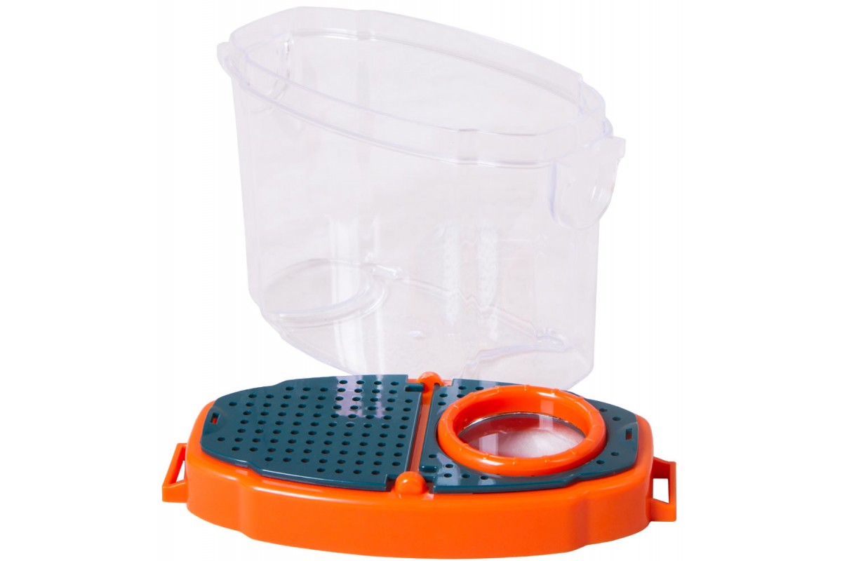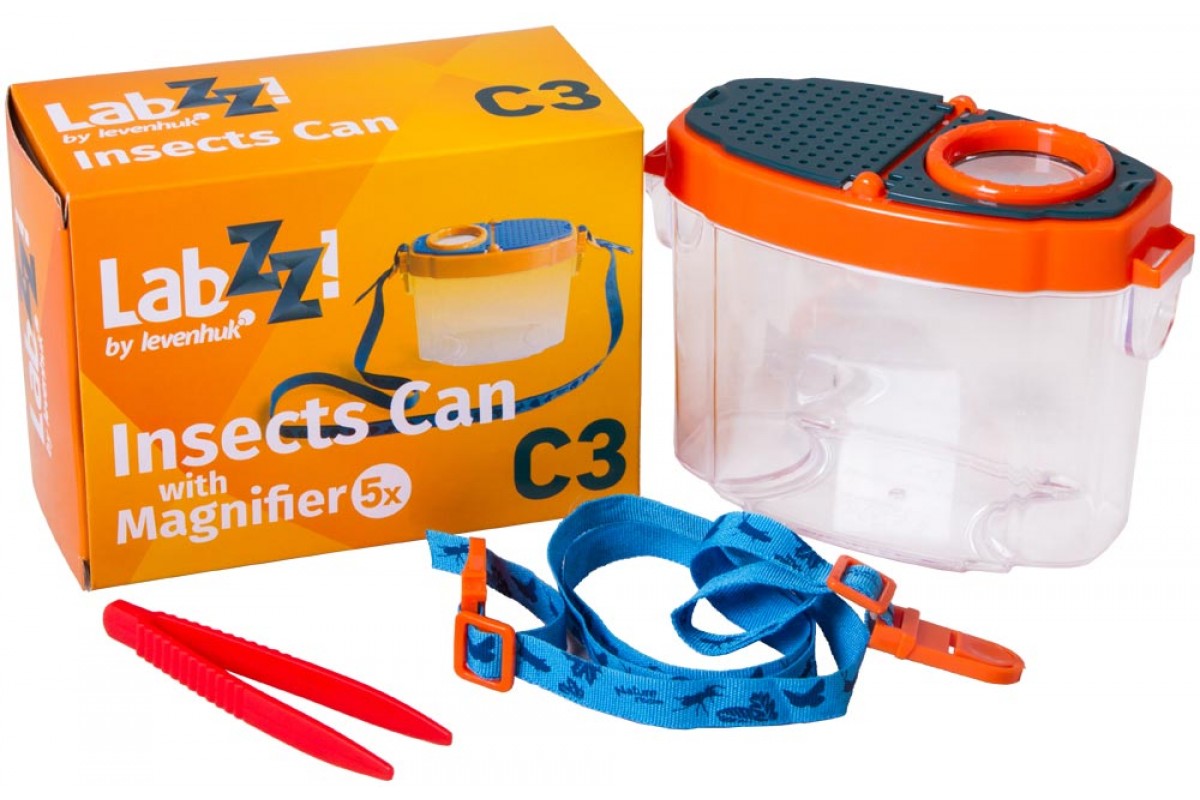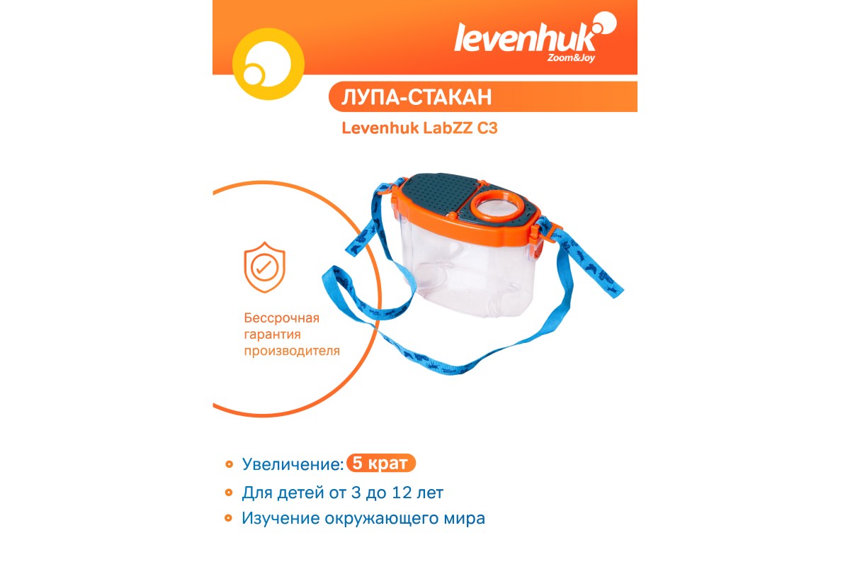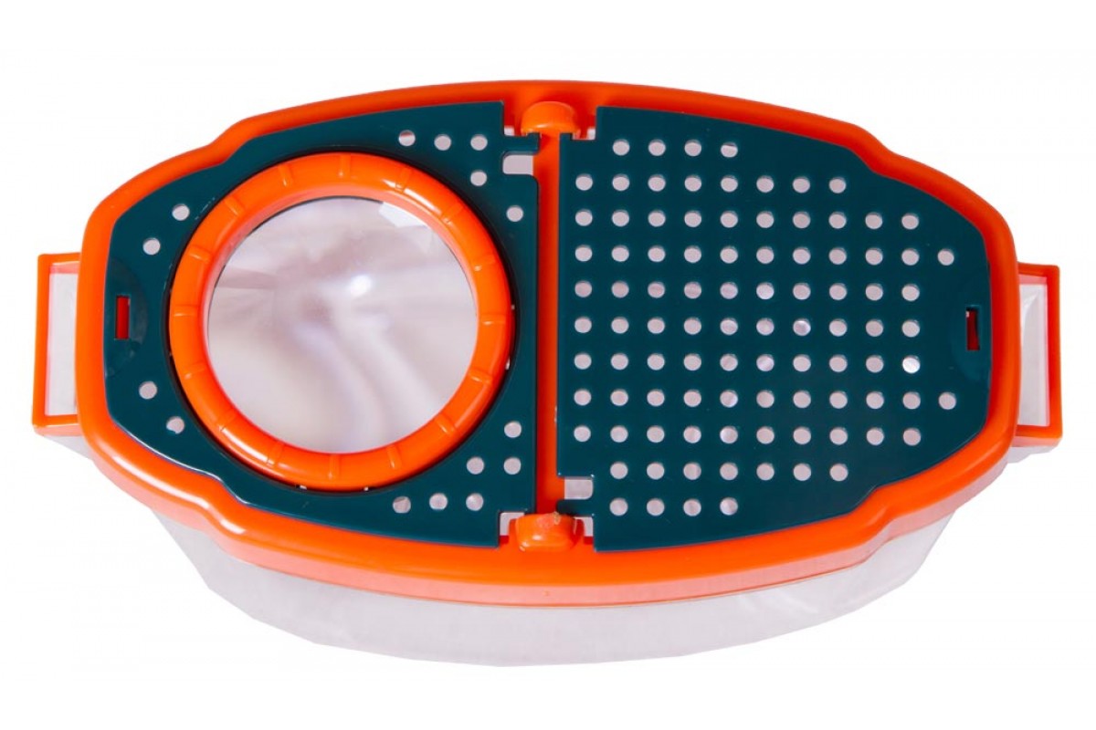 Лупа-стакан Levenhuk LabZZ создана специально для юных исследователей природы. Она состоит из бокса с прозрачными стенками и крышки с 5-кратной лупой. Внутрь можно помещать небольшие предметы для исследования: камни, образцы почвы, части растений и насекомых. Бокс можно заполнить водой, и тогда внутри смогут жить рыбки и головастики. Для удобства лупа-стакан комплектуется шейным ремешком и пластиковым пинцетом для работы с образцами.