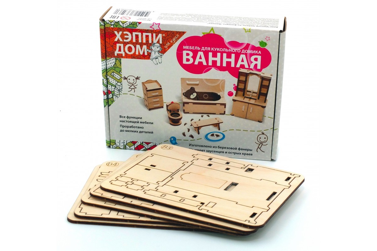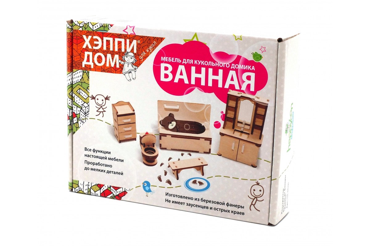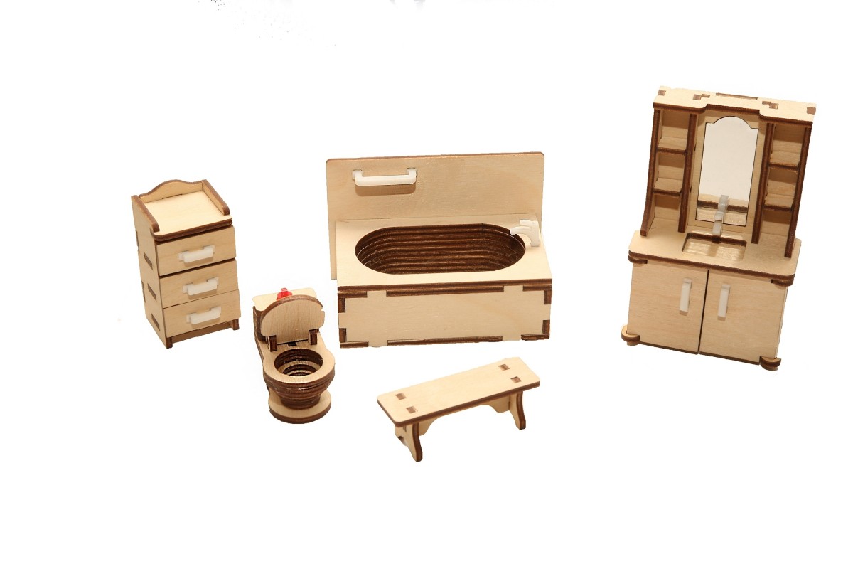 Набор мебели ХэппиДом «Ванная» создан специально для одной из комнат Конструктора из дерева «Кукольный дом».