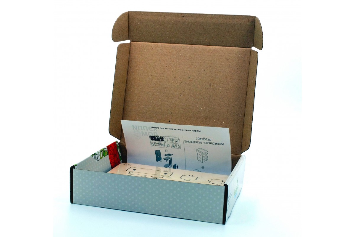 Мебель выполнена из березовой фанеры. Все элементы собираются без клея, просто вставляются в пазы, крепление очень прочное и надежное.