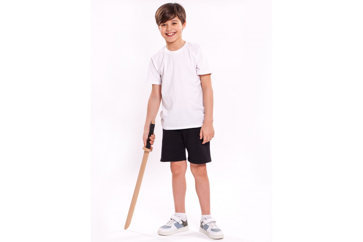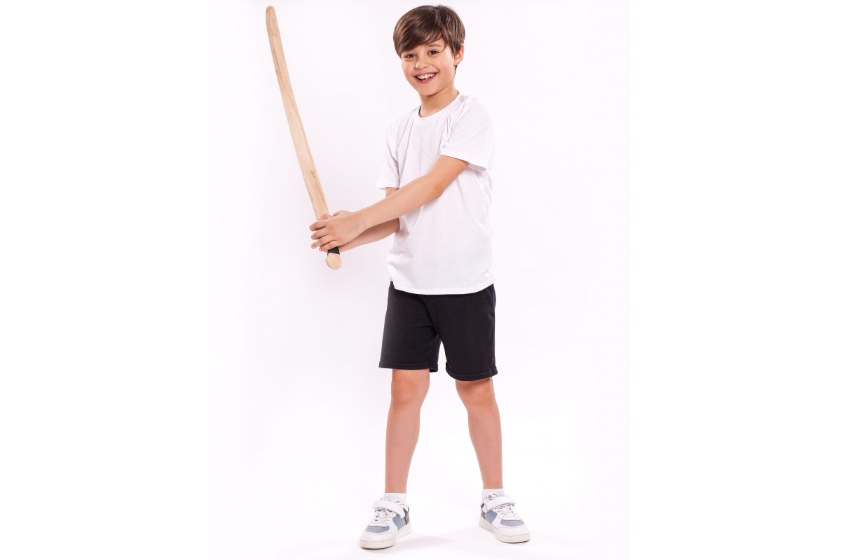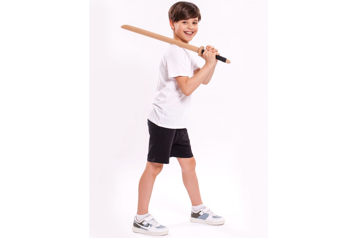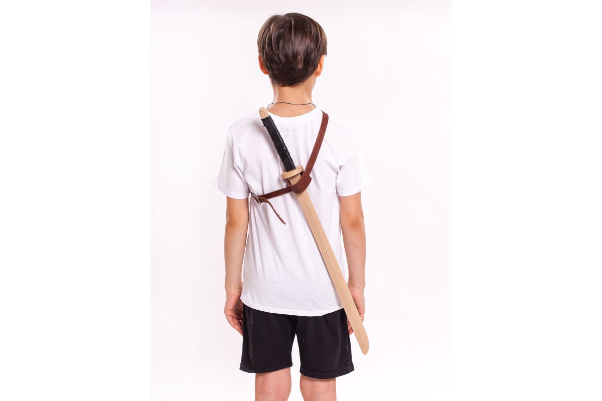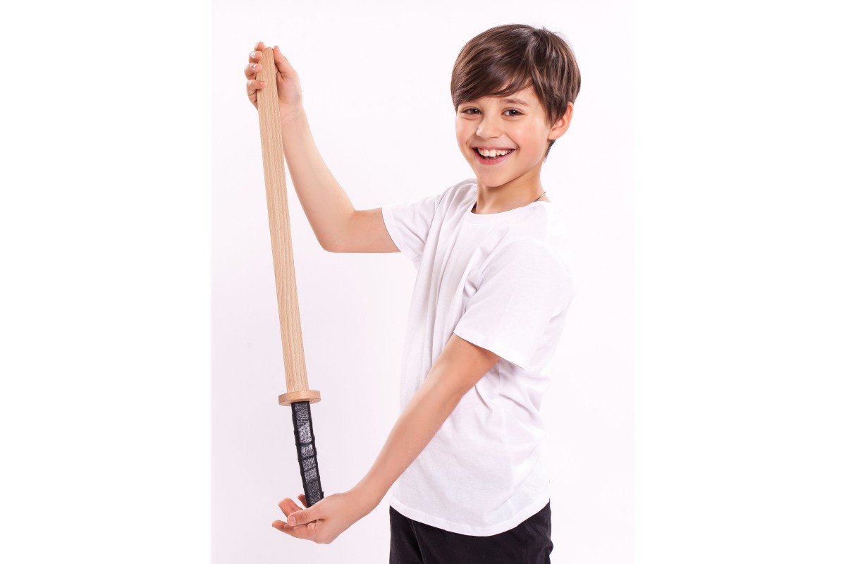 Детское деревянное оружие изготовлено из массива бука, отшлифовано. На рукоятках используется натуральная кожа, чтобы рука не скользила. Выдерживает самые сильные удары и готова к полноценной игре или занятиям в кружках, секциях.
