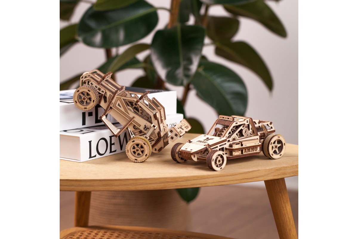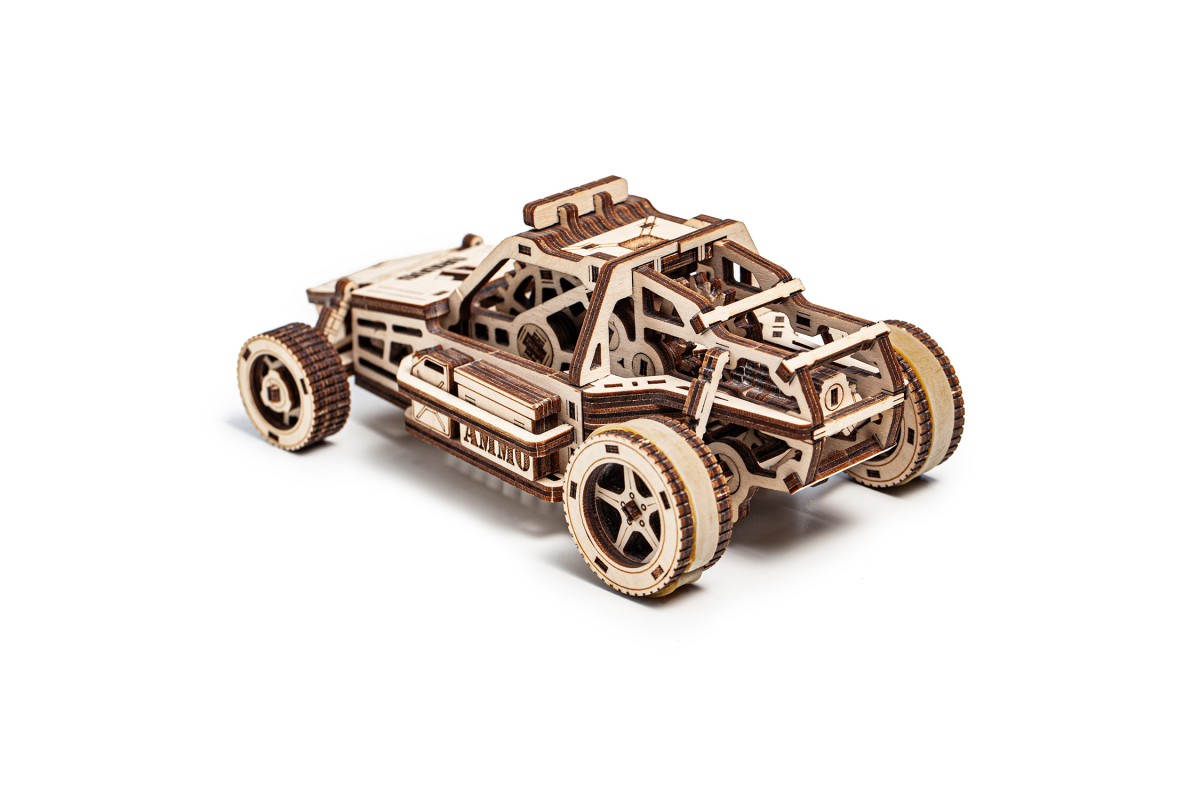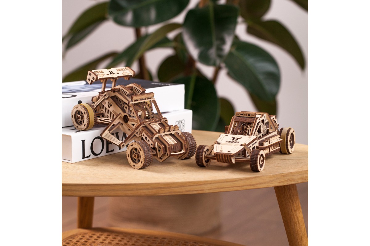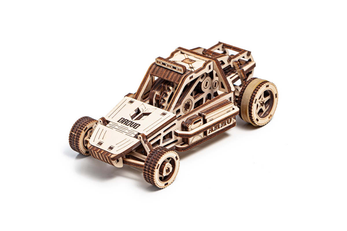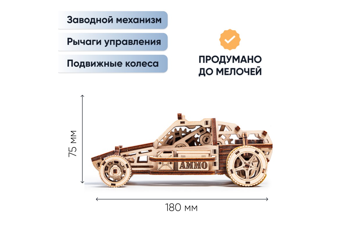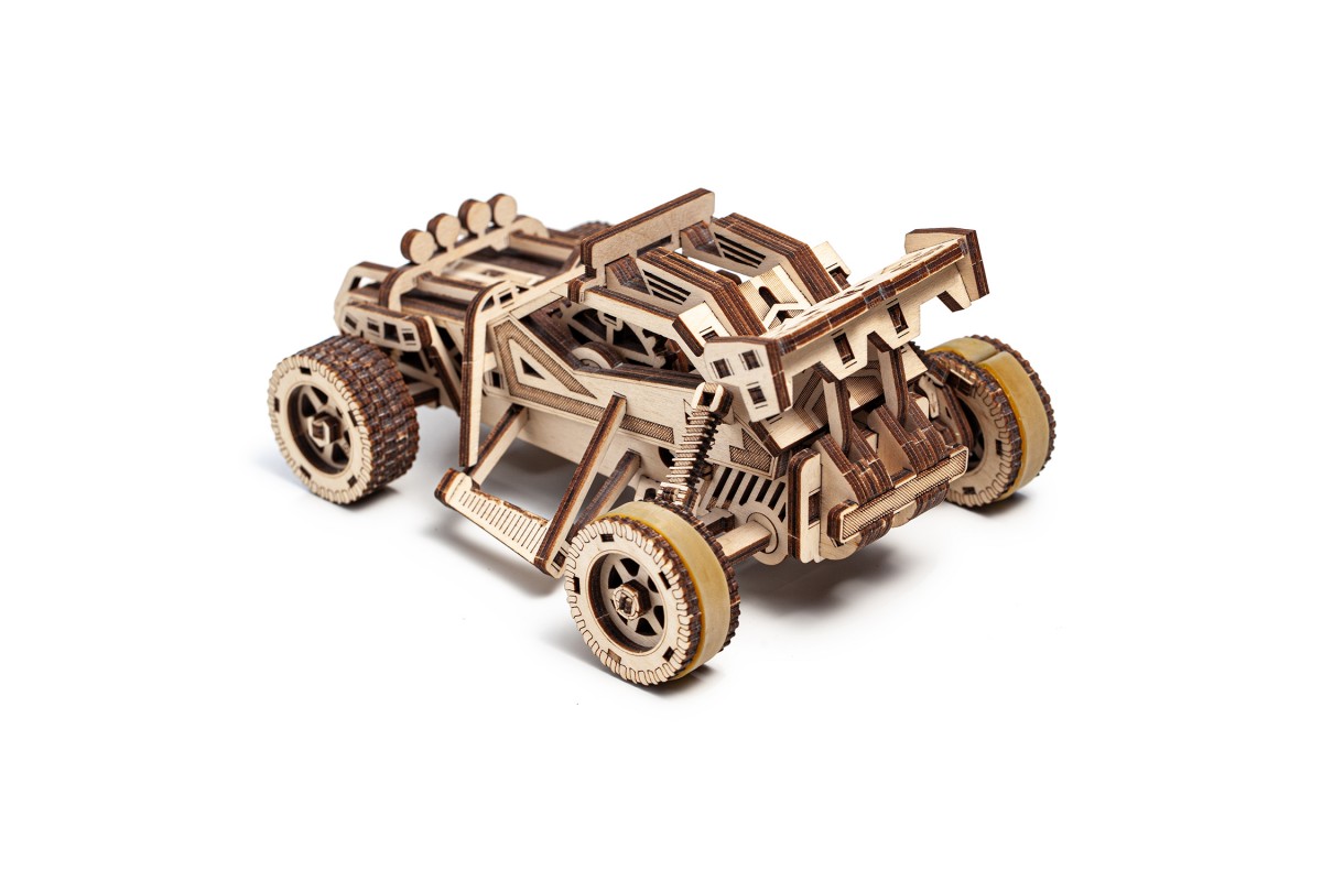 Две деревянные модели спортивных багги с заводным механизмом высоко оценят братья и сестры соревнуясь на скорость и дальность. С деревянным 3D пазлом с заводным механизмом можно играть вместе даже взрослым. В качестве мотора используется металлическая спиральная пружина, которая не высыхает, не растягивается и служит дольше.