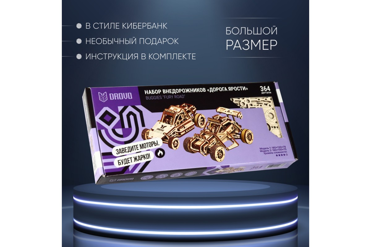 Деревянный набор конструкторов "Дорога ярости" станет отличным подарком для детей и взрослых, любителей гонок и Безумного Макса. Такой конструктор подойдет не только для мальчиков, но и для настоящих мужчин.
