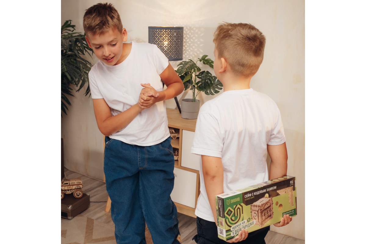 Деревянный конструктор "Сейф с кодовым замком" станет отличным выбором подарка для коллег, друзей или родных. Такой конструктор подойдет не только для мальчиков, но и для настоящих мужчин.